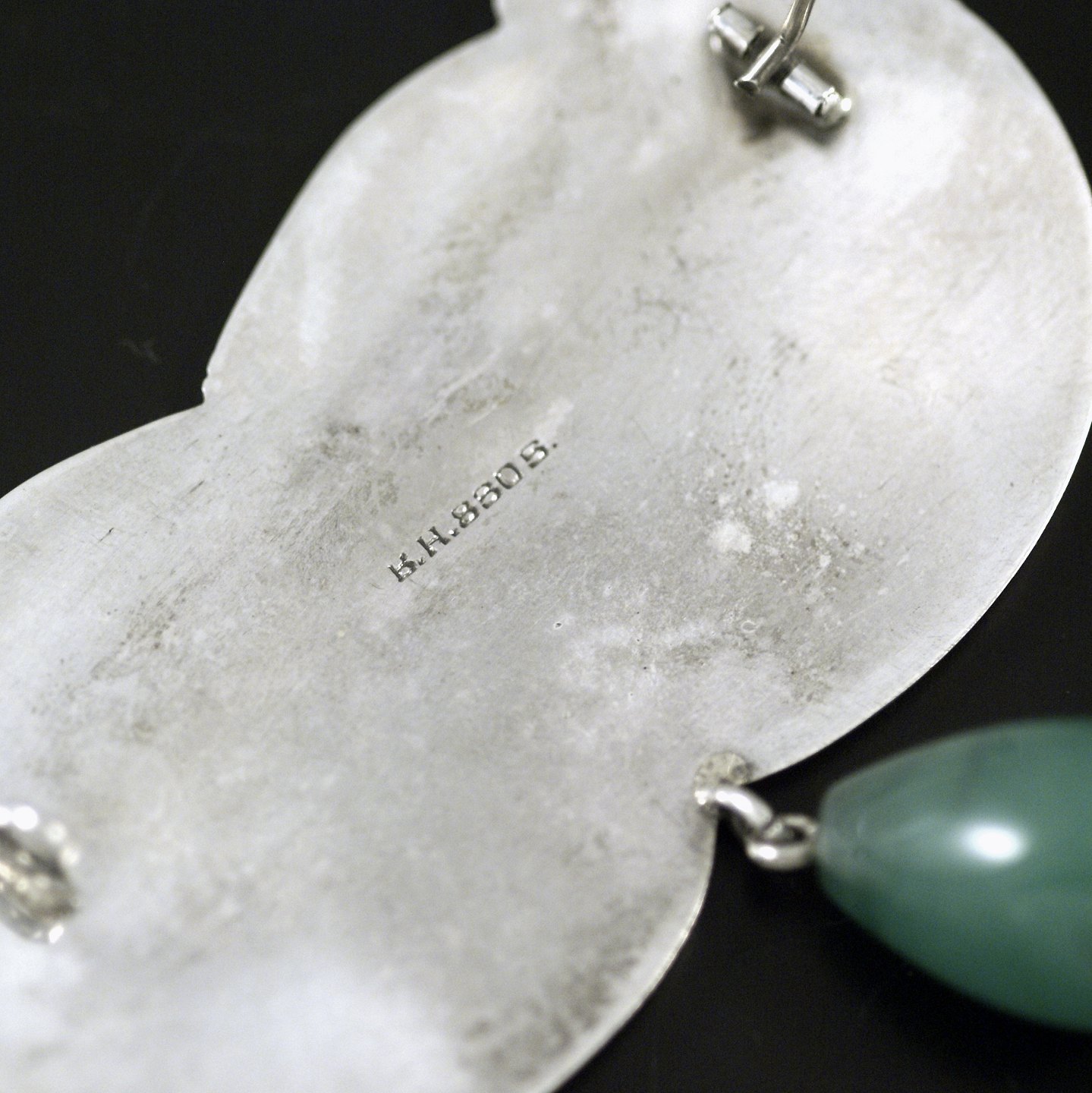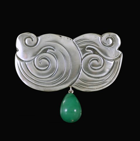 Bernhard Hertz. Skønvirke Broche i sølv med aventurinkvarts.