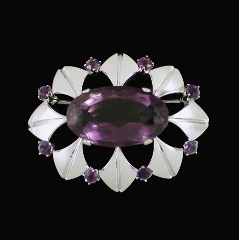 Karen Strand 1924-2000. Broche i 18k hvidguld med ametyst.