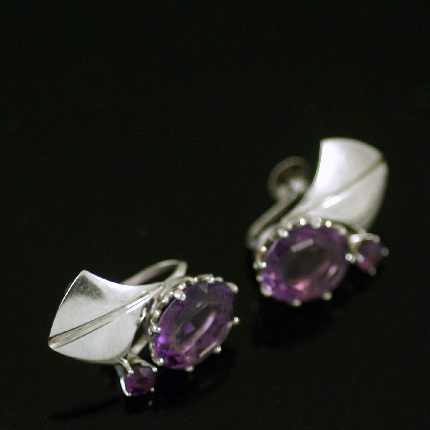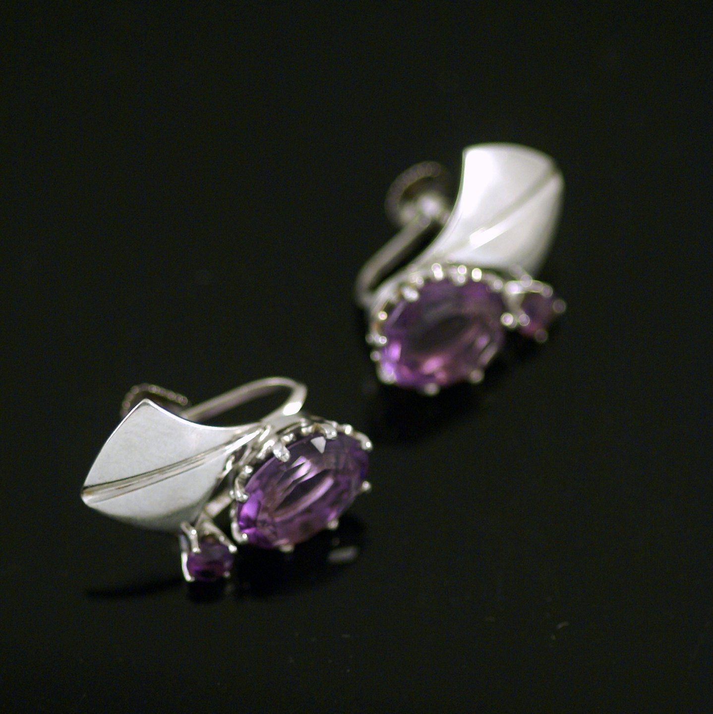Karen Strand 1924-2000. Øreskruer i 18k hvidguld med ametyst.