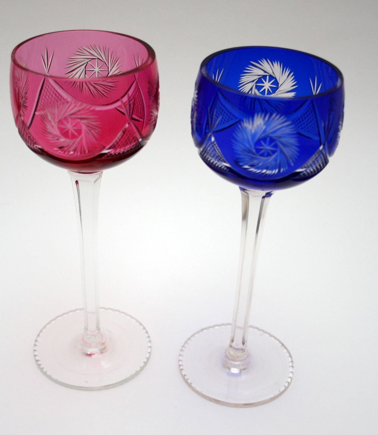 Bøhmisk krystal, Vinglas med slebet kumme og stilk. Højde 19 cm. Lav kumme diameter 7 cm., højde 5 cm. Pris: 225 kr. stk.