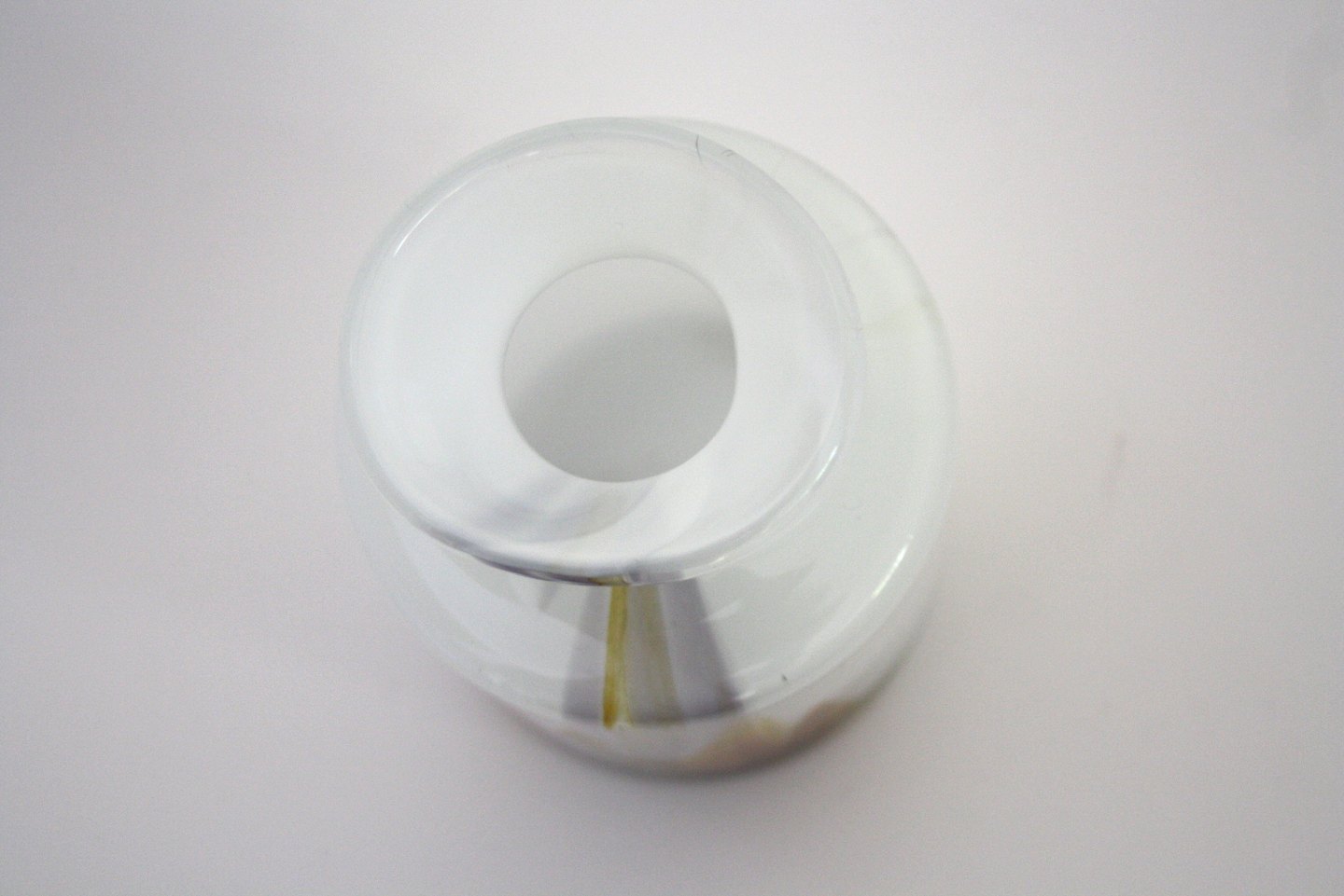 Holmegaard, Cascade vase designet af Per Lütken i 1970,erne. Mundblæst opalhvid glas med indlagte skår i lys brun og sart lilla farver. Signeret HG7.