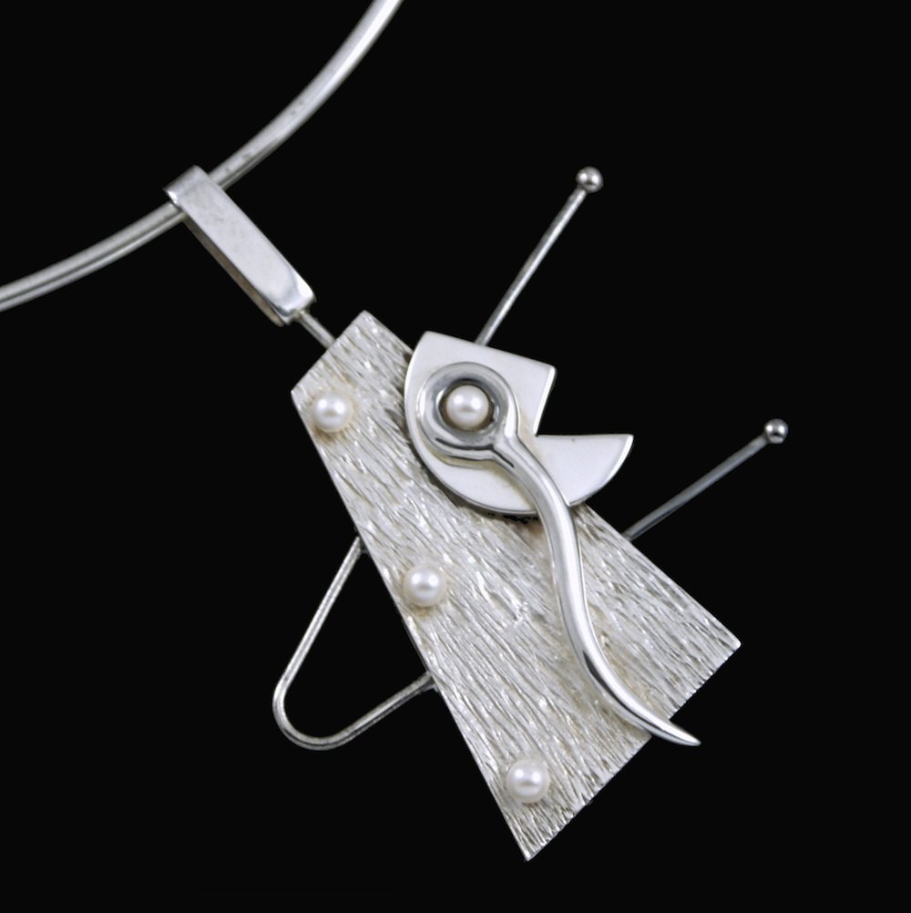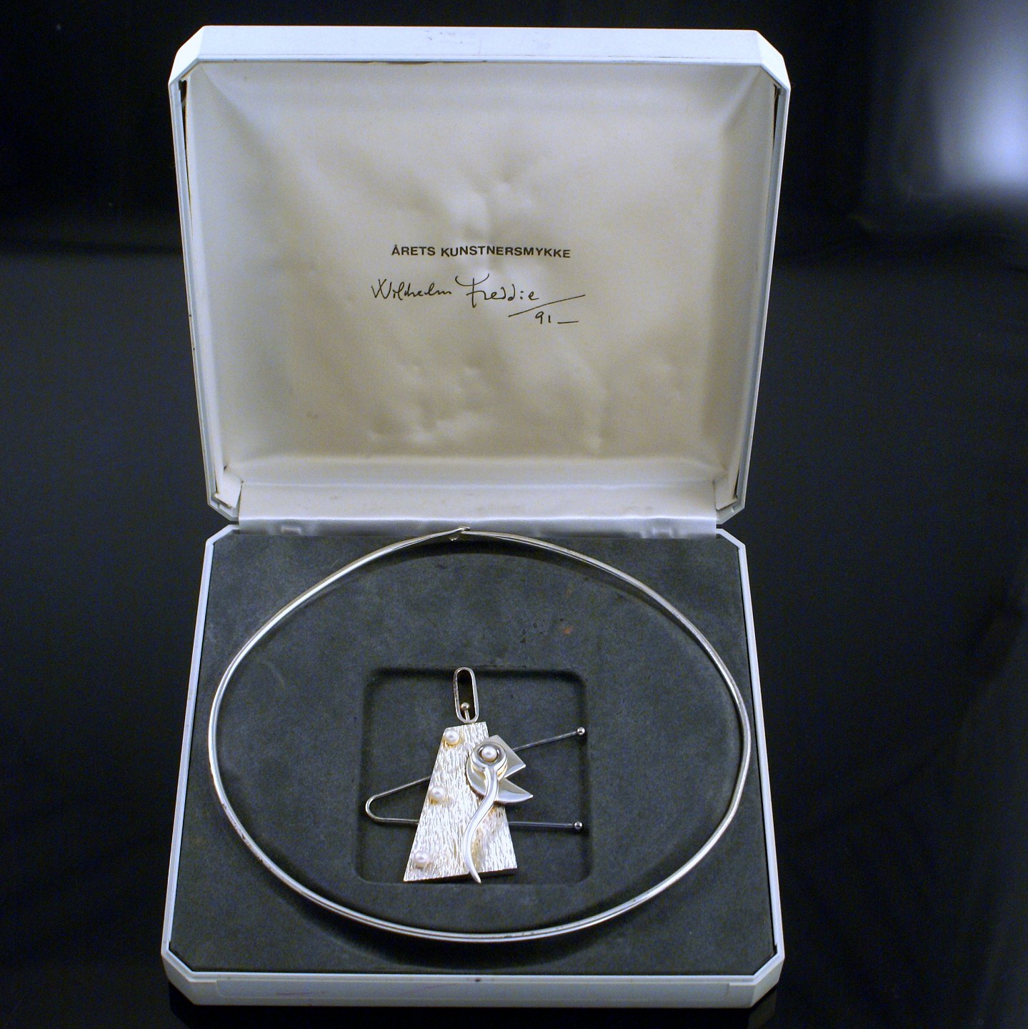 Wilhelm Freddie. Sterling Silver Neckring with Pendant. Artist jewelry 1991.