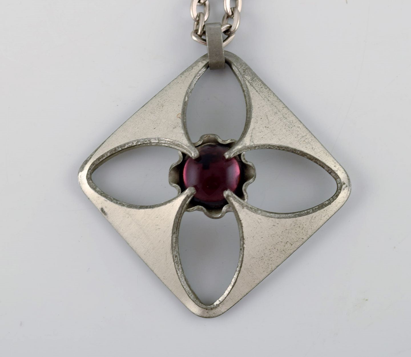 Bent Larsen Tin. Denmark. Necklace in pewter with purple stone. Modern design, 60 / 70 s.