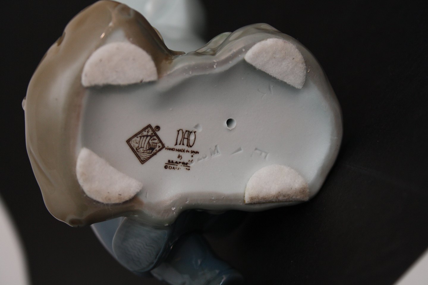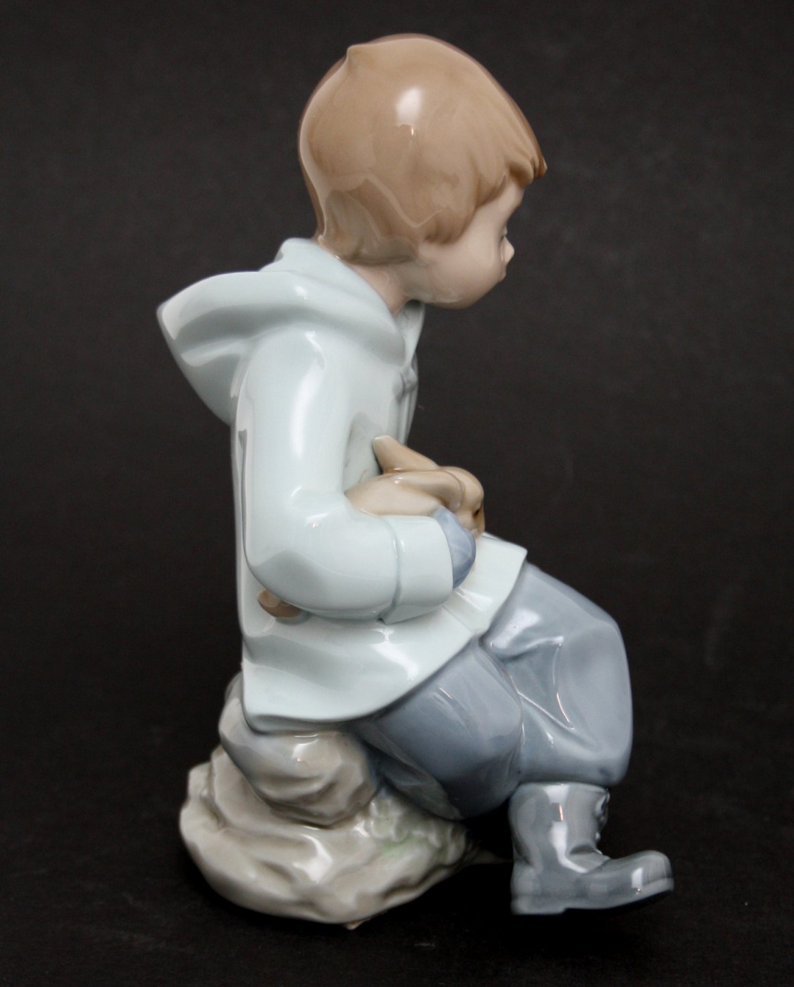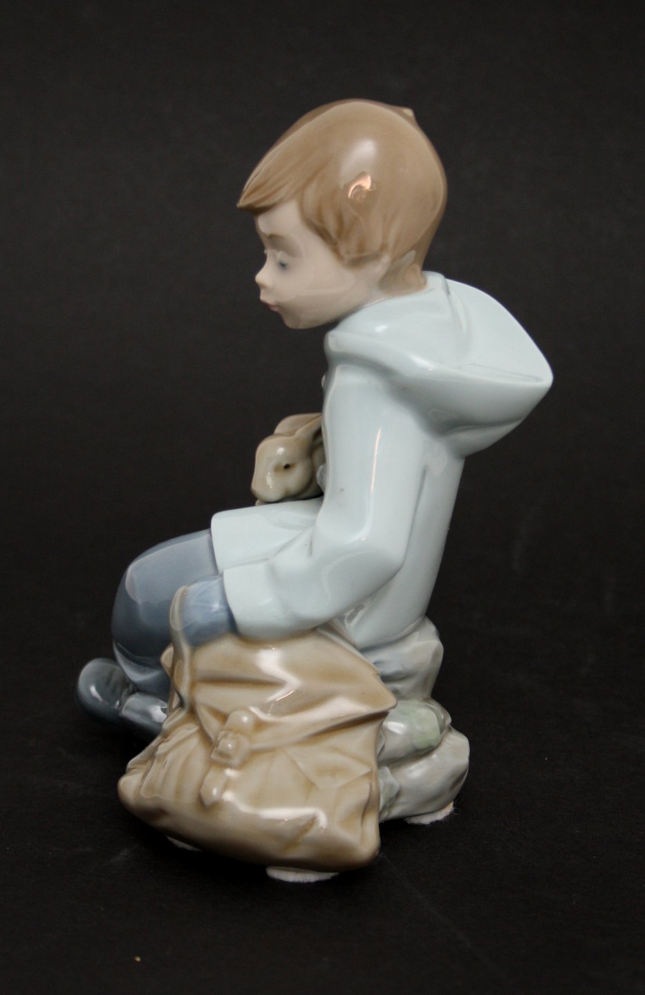 Siddende dreng med kanin og taske, Nao/Lladro, Spanien