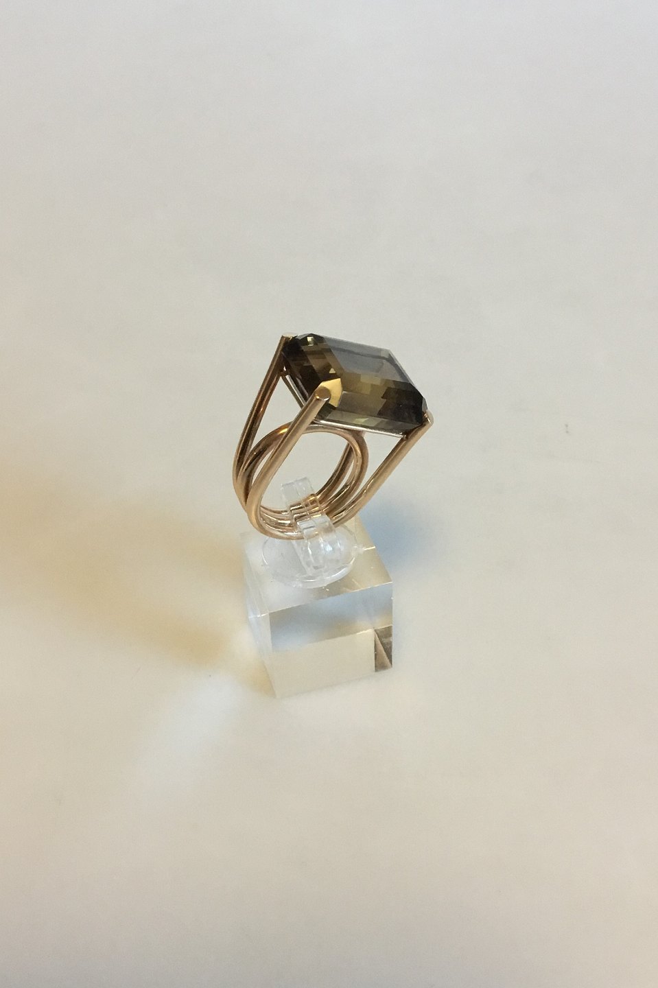 Bent Knudsen 14 K Gold Ring with smoke Quartz