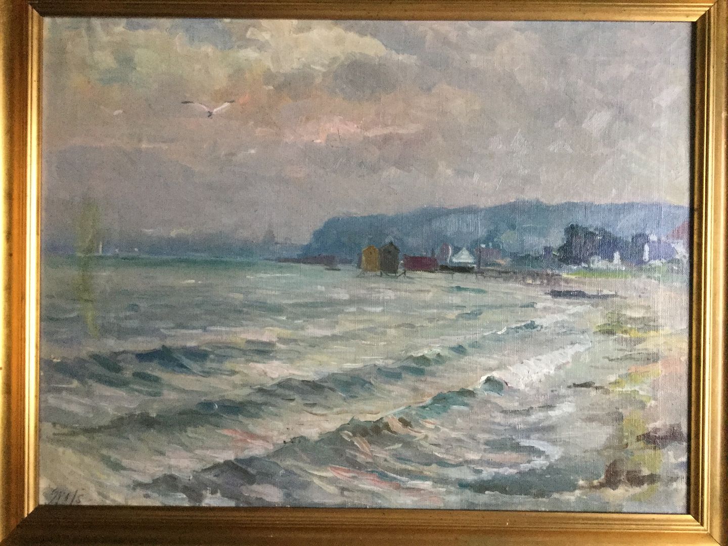 Kystparti med by i baggrunden