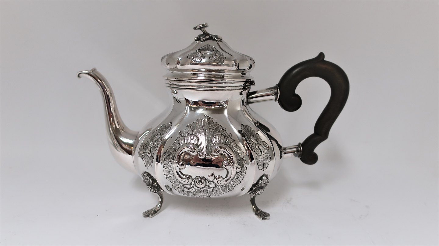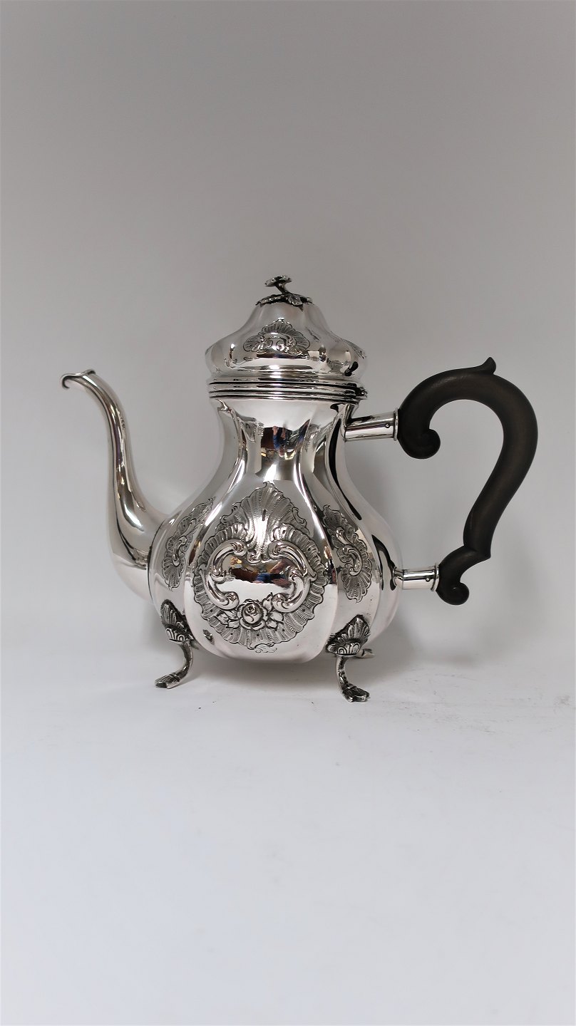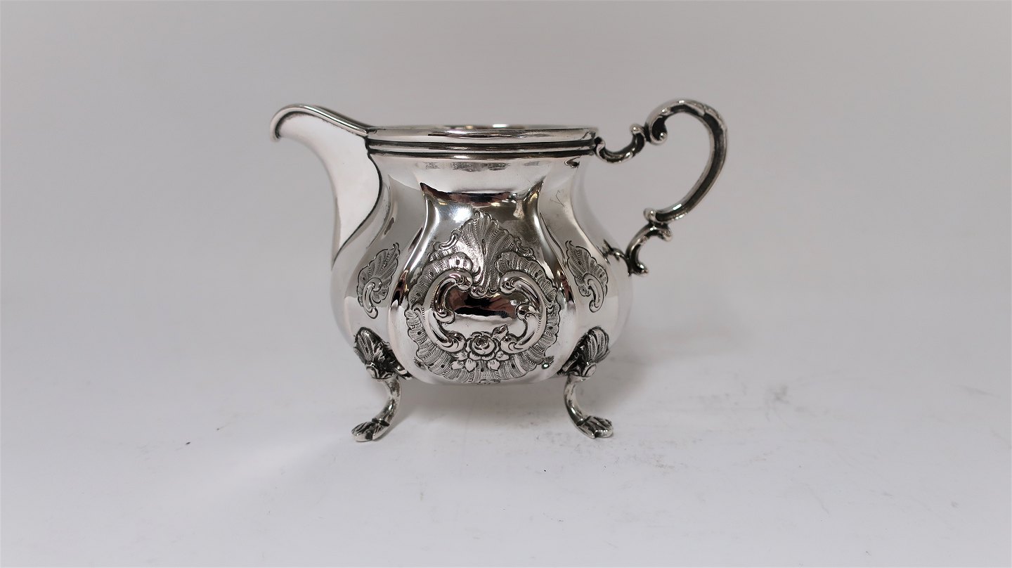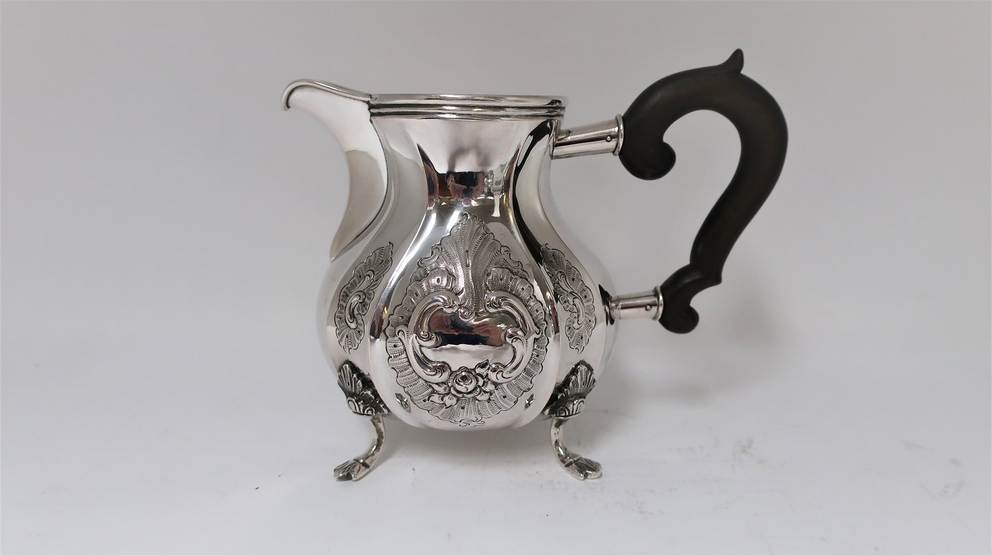 Silver service consisting of tea pot, coffee pot, water jug, creamer and sugar bowl. Silver (830). Produced 1948.