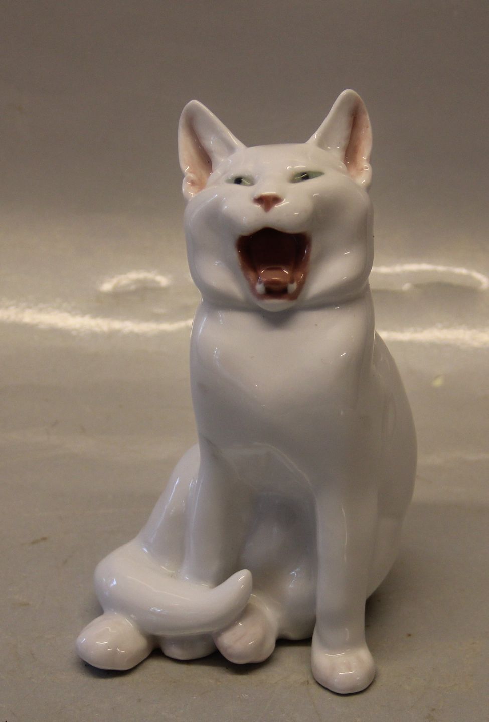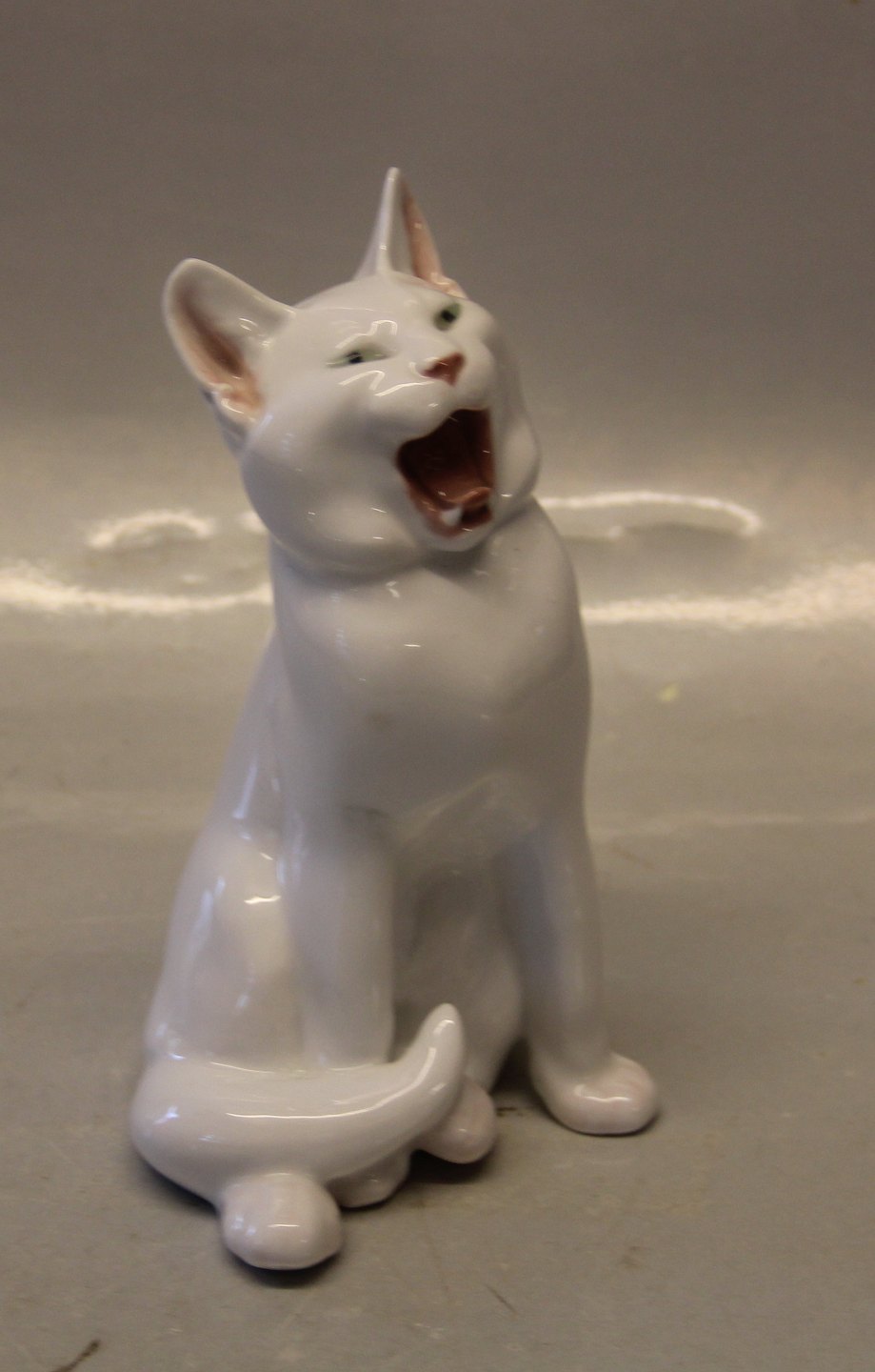 Royal Copenhagen Rare white cat 667 RC Cat yawning EN 1905 17 cm In mint and nice condition
