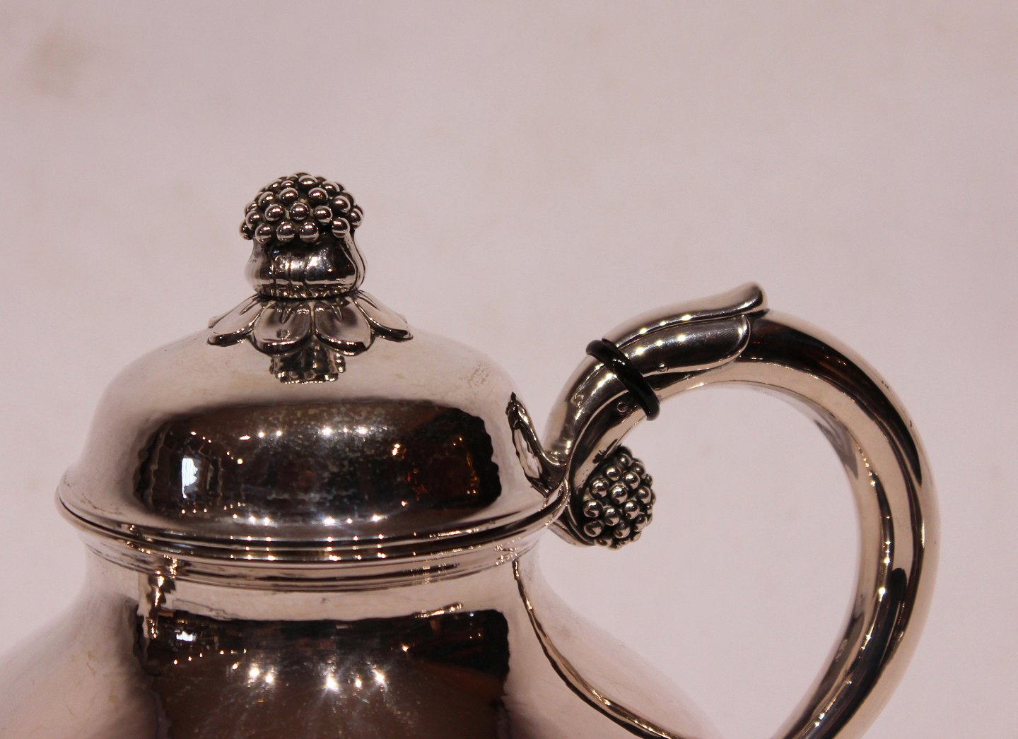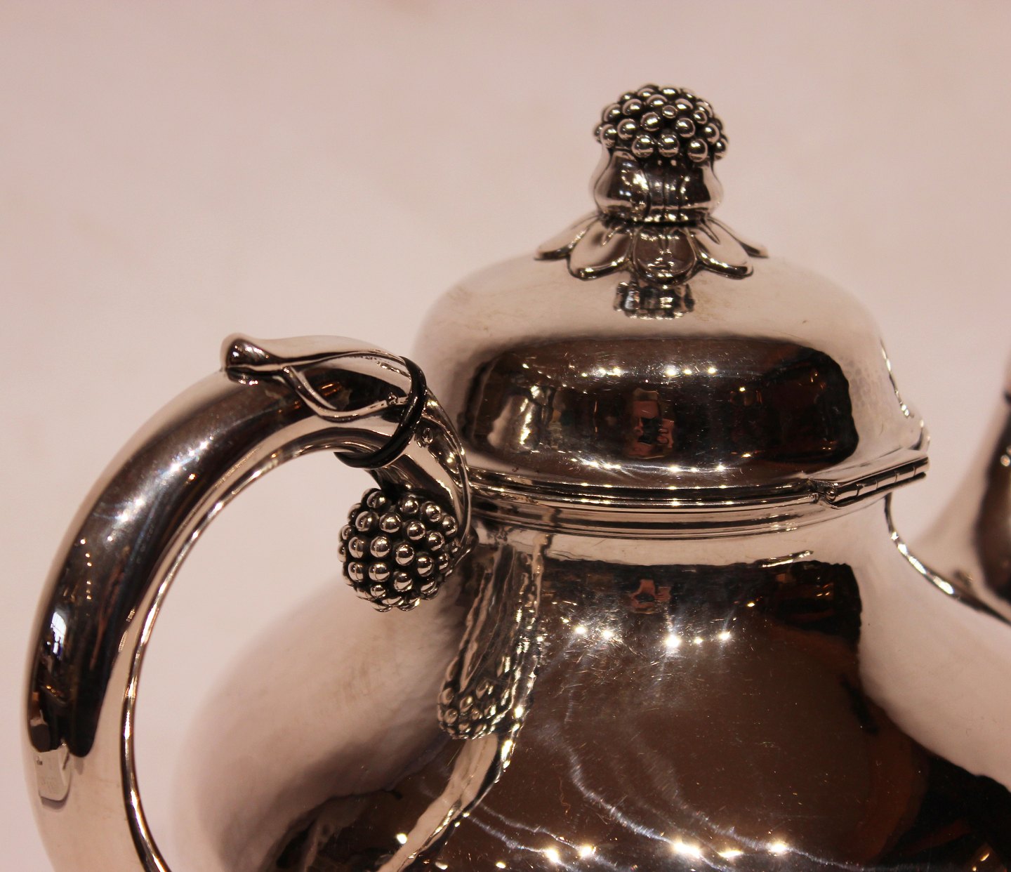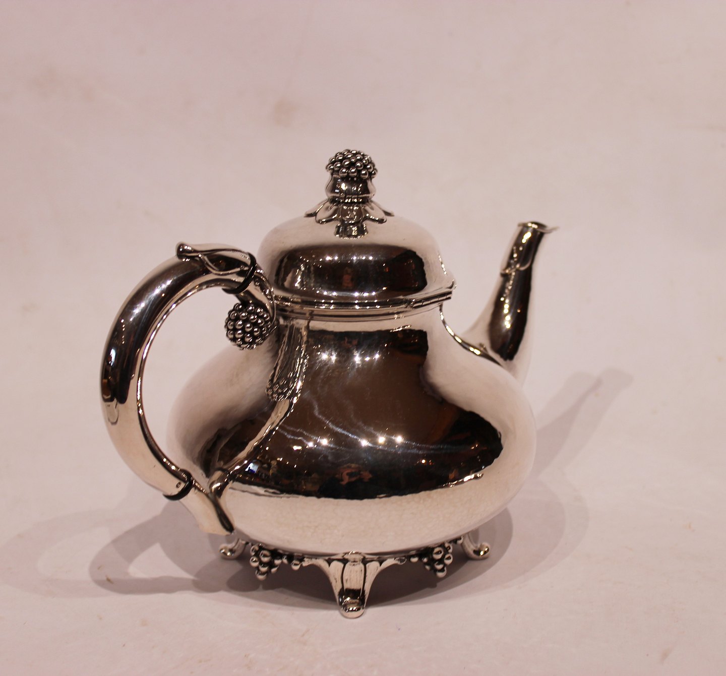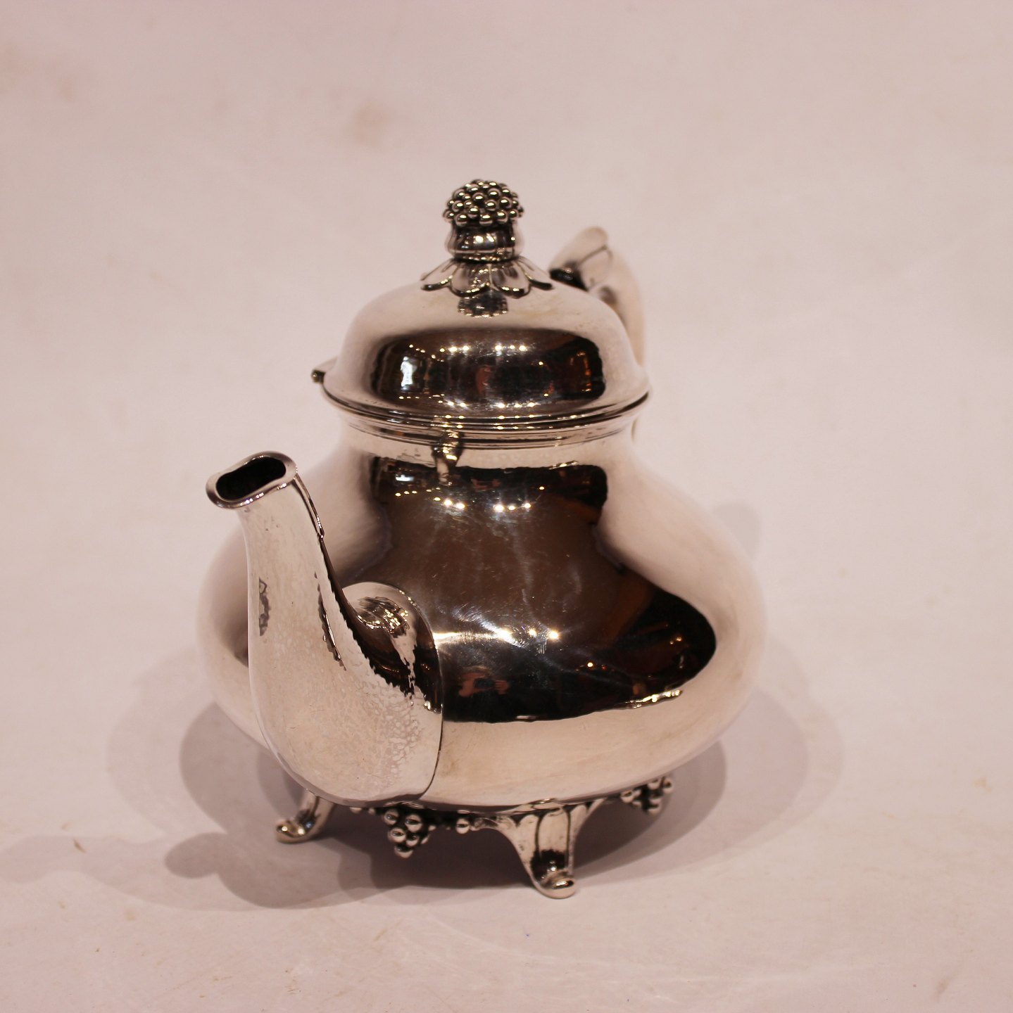Tekande af tretårnet sølv dekoreret med druer og på fødder. Kanden er i flot brugt stand.