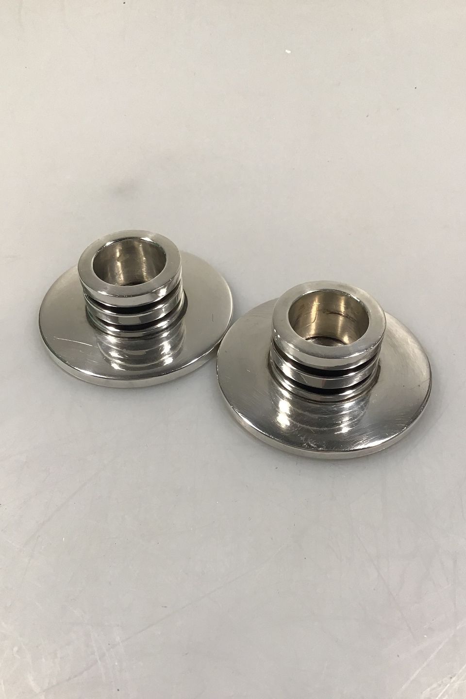 Georg Jensen Sterling Silver Pyramid Candlesticks Pair No 747A Harald Nielsen H 2.7 cm/1.06" Diam 7 cm/2.75" Combined Weight ca 160 gr/5.66 oz.