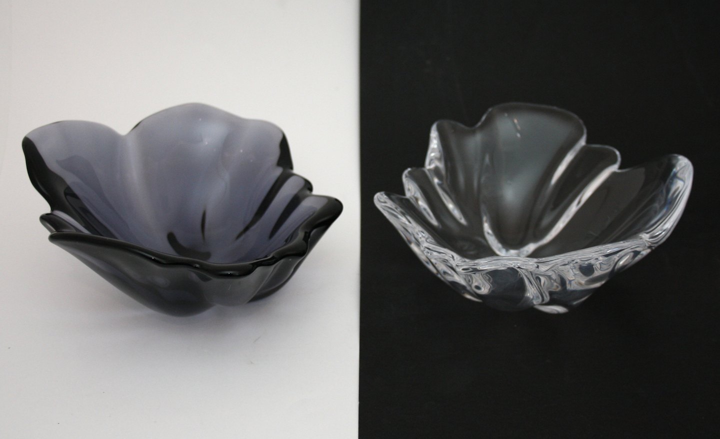 Holmegaard, Natura skåle i massivt glas med organiske former, designet af Ole Kortzau i 1996 for Royal Copenhagen.