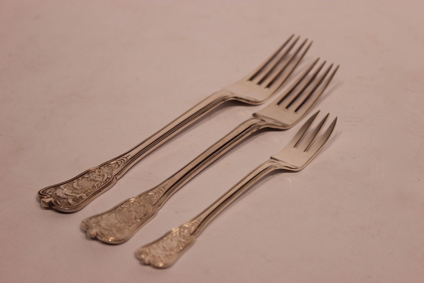 Dinner fork, lunch fork and cake fork in the Rosenborg pattern by A. Michelsen in three-towered silver.