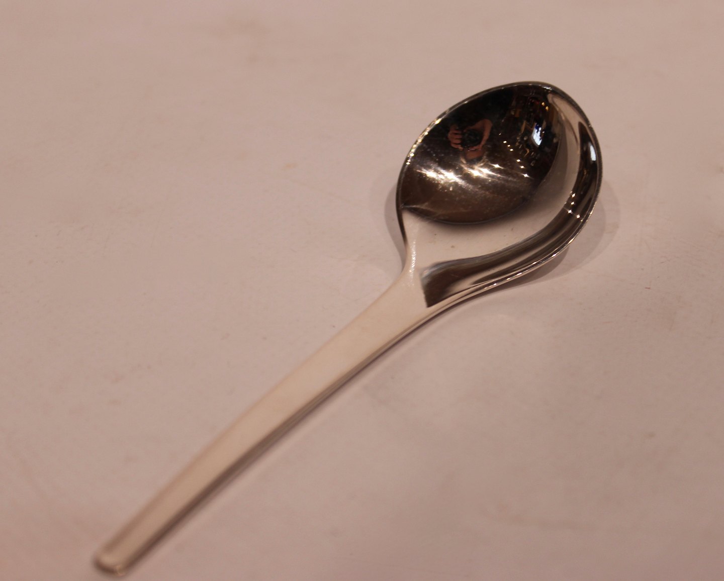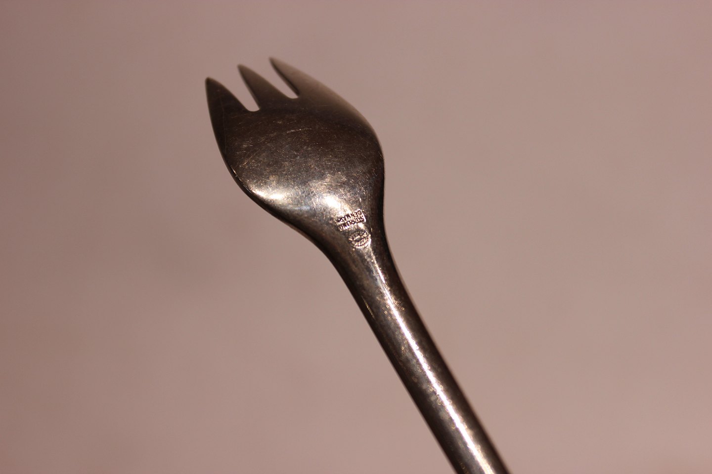 Middagsgaffel, frokostgaffel og marmeladeske i mønstret Tuja af Georg Jensen og 925 sterling sølv.