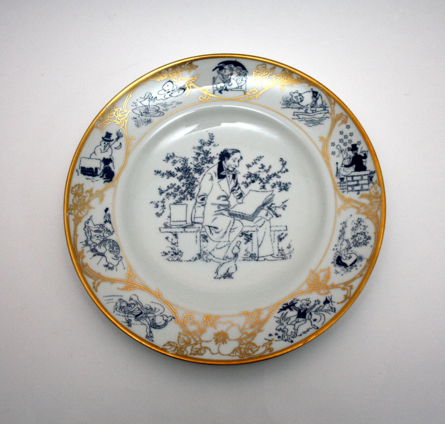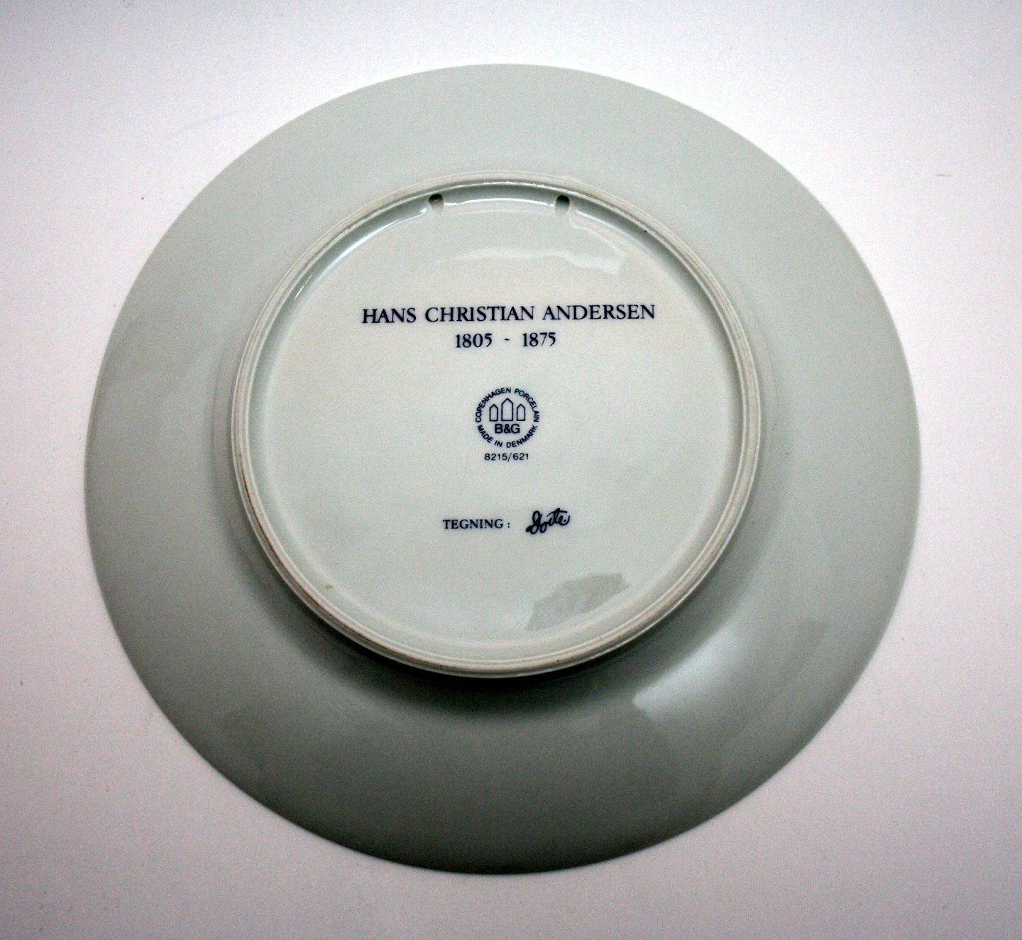Bing & Grøndahl, Hans Christian Andersen jubilæumsplatte 1805-1875. Formnr. 8215/621. Diameter 24,5 cm. Pris: 200 kr. stk. Lager: 4