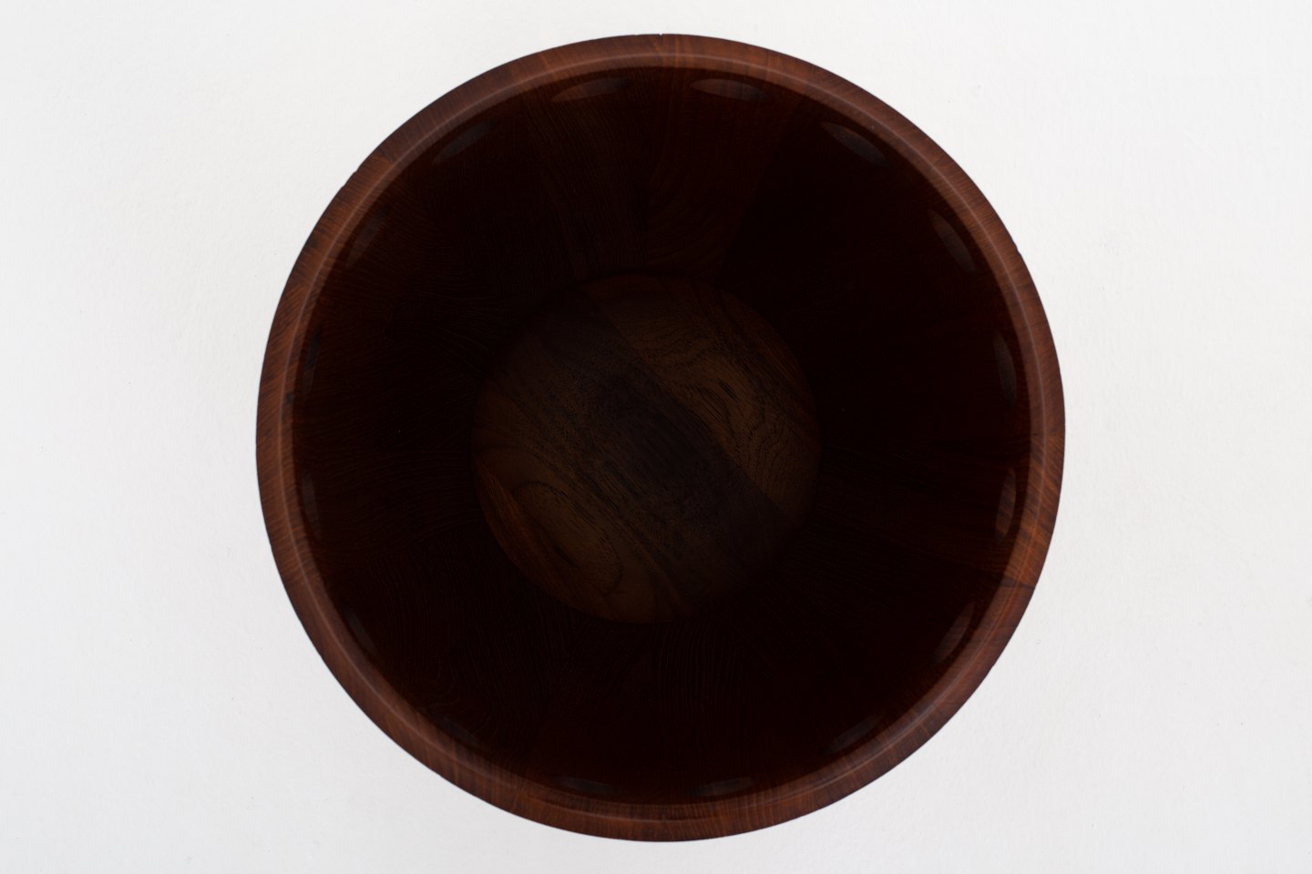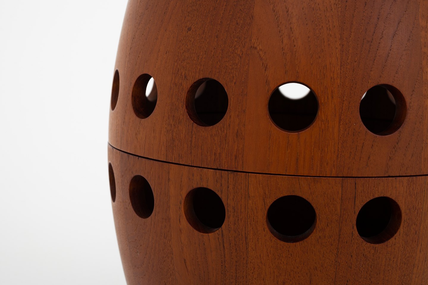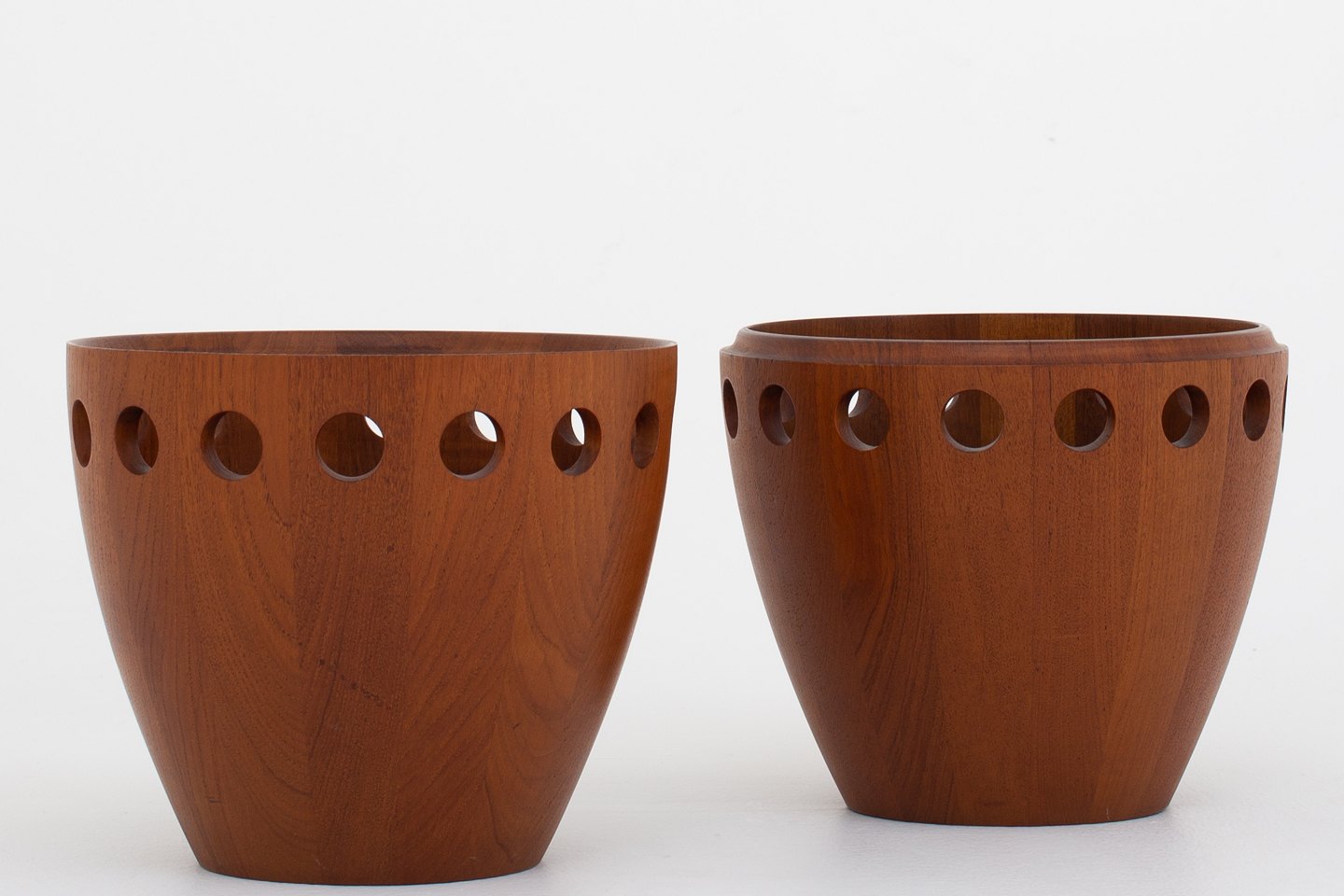 Frugtskål i massiv teak, i 2 dele m. hul-detaljer. Ca. 1959.