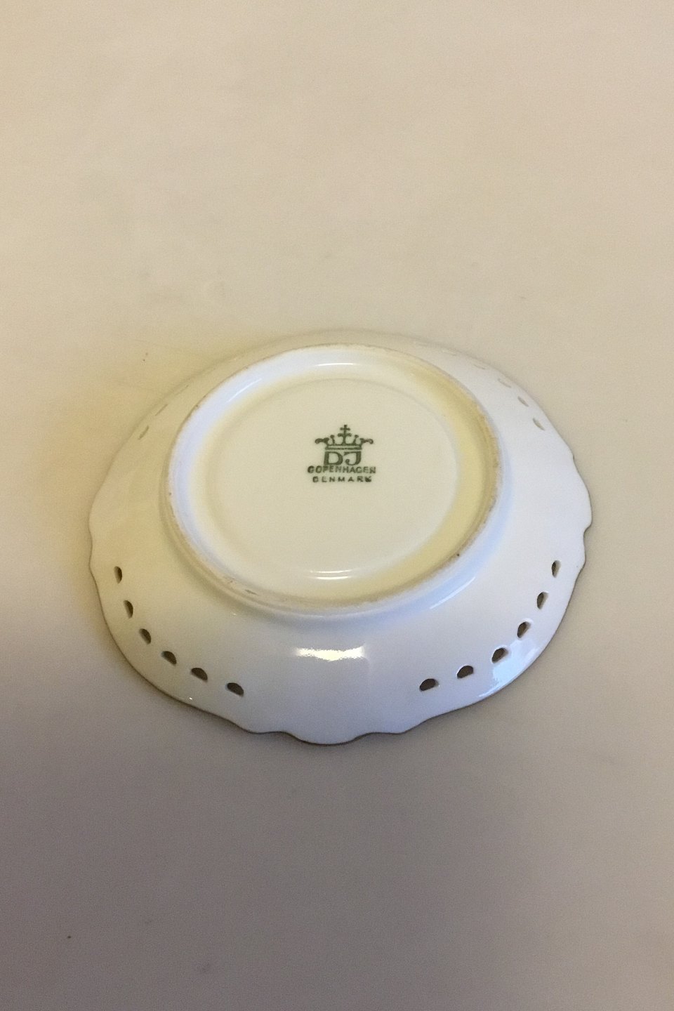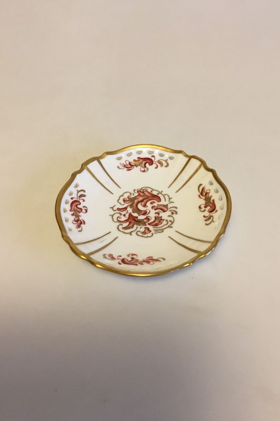Dahl Jensen Dronning Kagetallerken med guld og gennembrudt kant. Måler 12 cm
