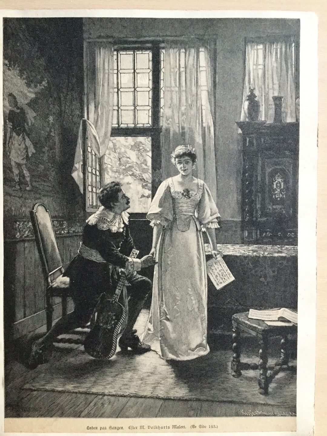 Træsnit "Enden paa sangen" efter maleri af Max Volkhart.