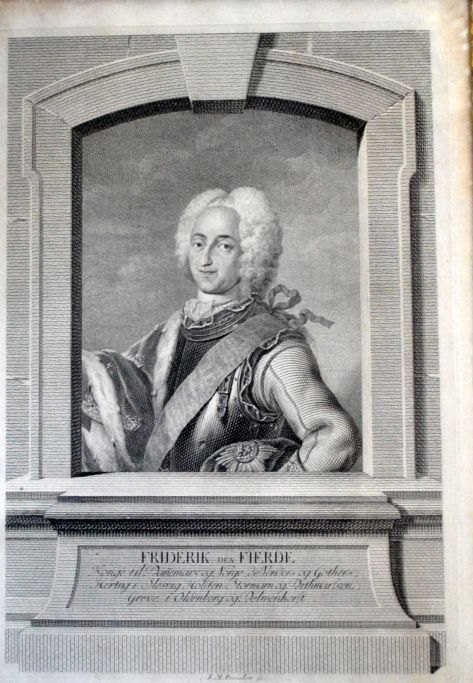 Preisler, Johan Martin (1715 - 1794): Portræt af kong Frederik IV. Kobberstik. Signeret. 34 x 24 cm.