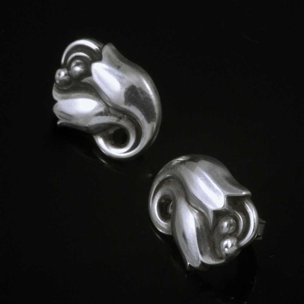 Georg Jensen. Sterling Silver Ear Clips #100. 1933-44 Hallmarks.