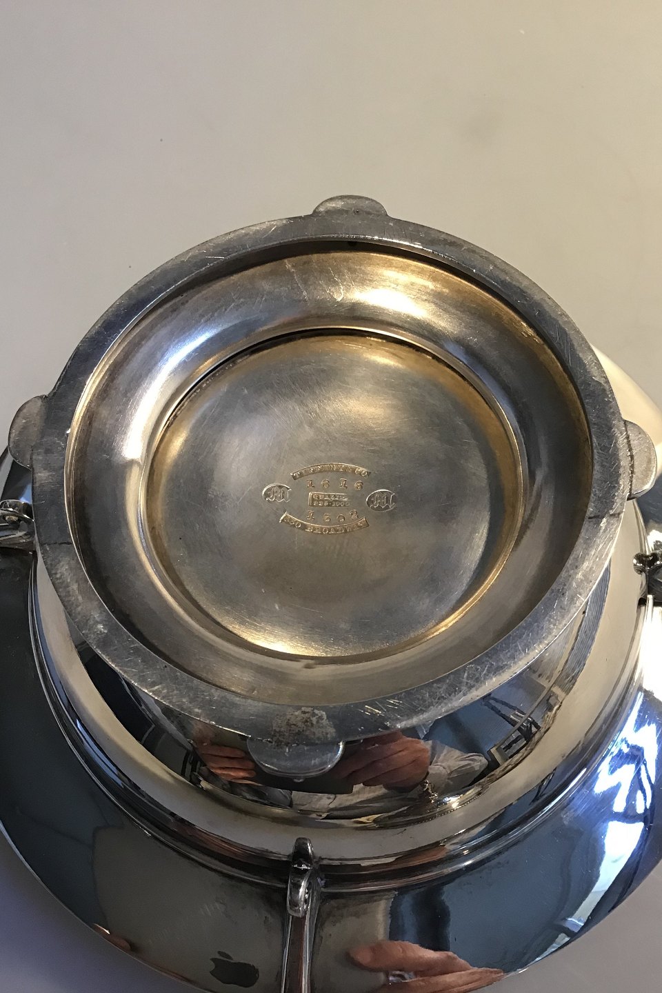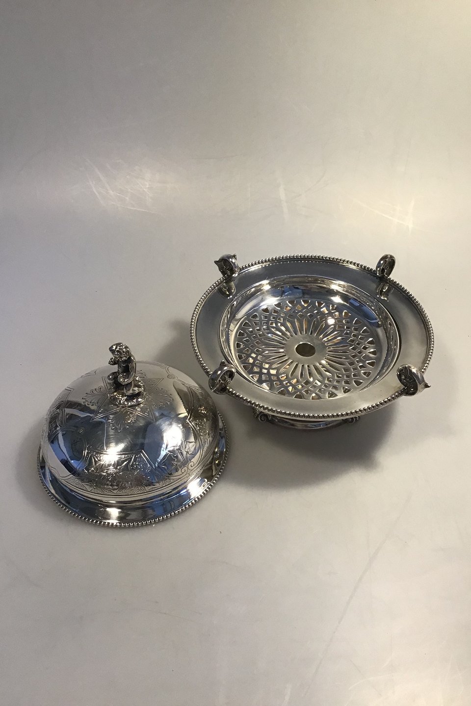 Tiffany Sterling Sølv Kaviarskål Ciseleret med efeu, lågknop i form af putto. Mester J.C. Moore & Son, Dessin 1616 og 1302. Tiffany & Co. H. 16 cm. Diam. 17,5 cm. Vægt 833 gr