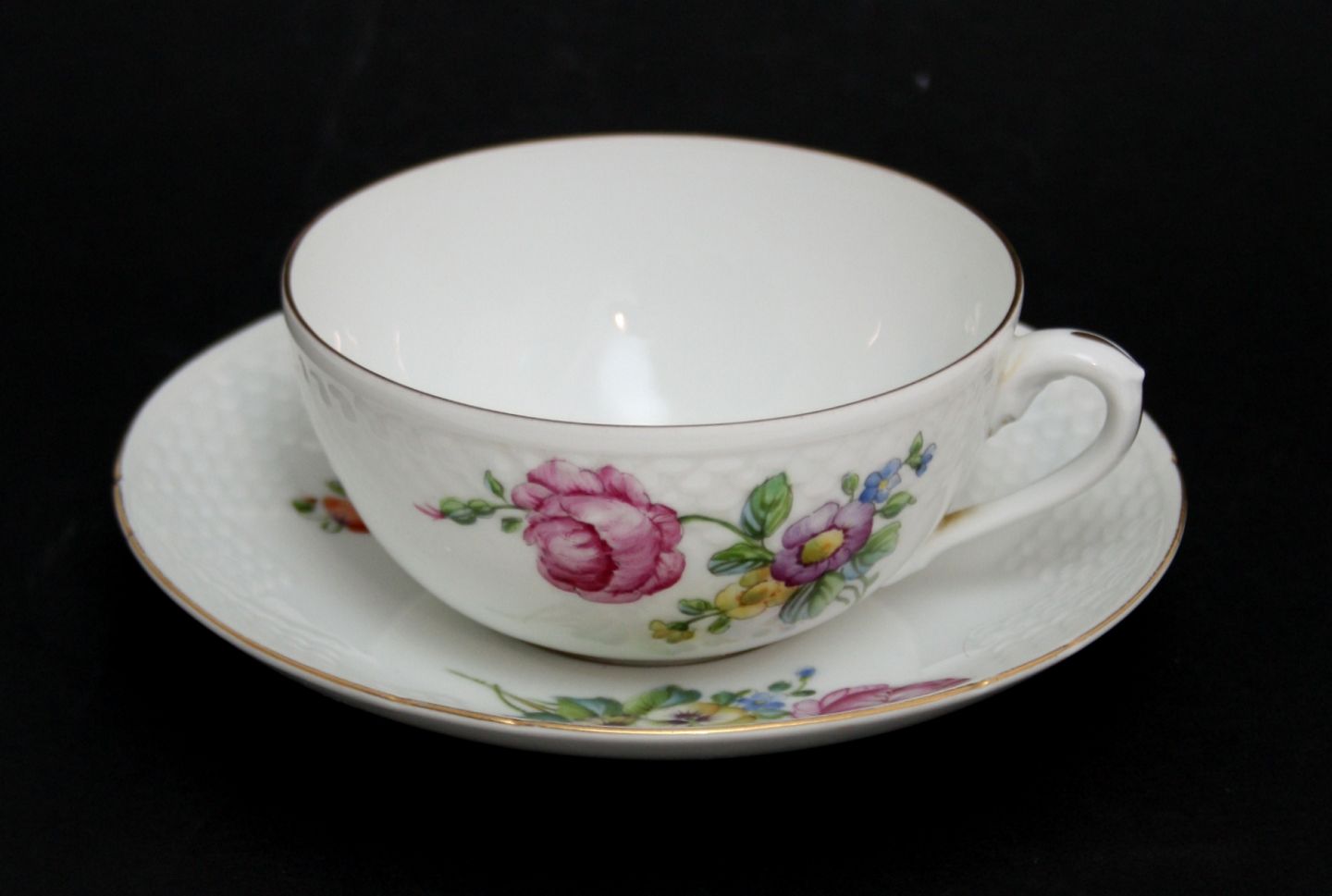 Bing & Grøndahl, Saksisk blomst. Tekop med underkop. Nr. 108. Højde 5 cm. Diameter 10 cm. Pris: 225 kr. stk. Lager: 3
