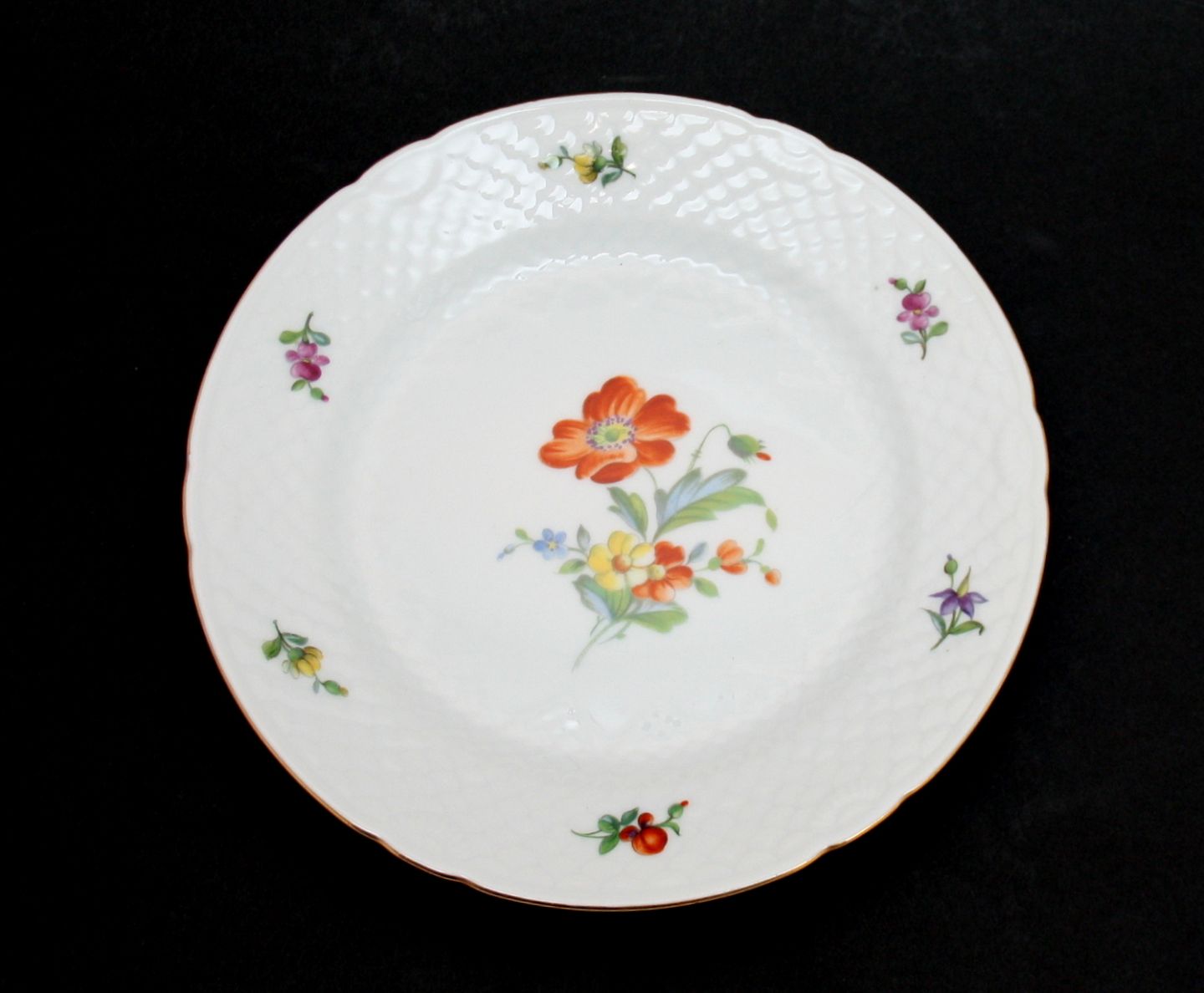 Bing & Grøndahl, Saksisk blomst. Stor kagetallerken. Nr. 28. Diameter 17,5 cm. Pris: 50 kr. stk. Lager: 8