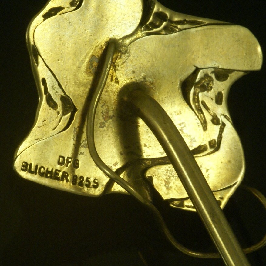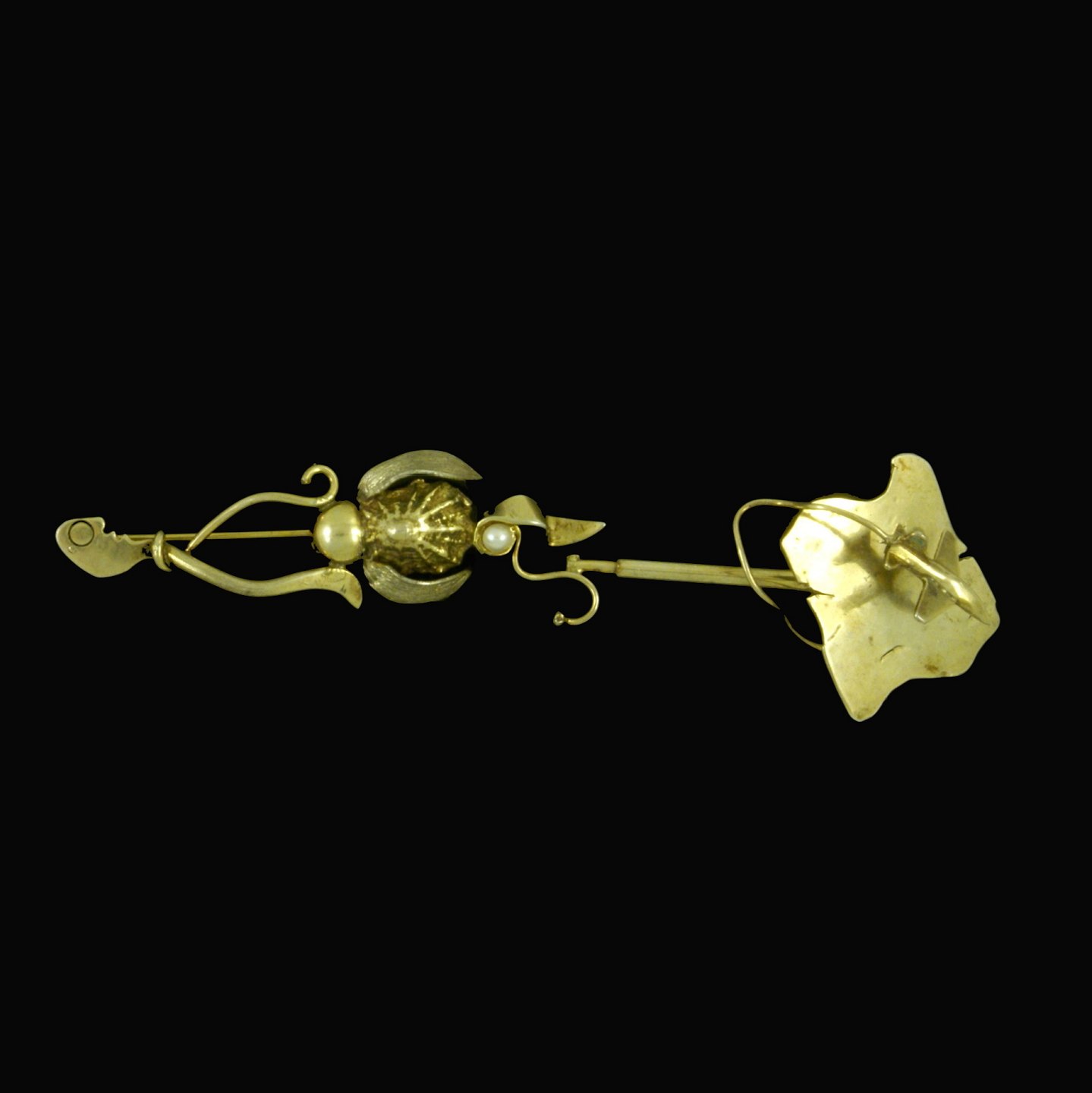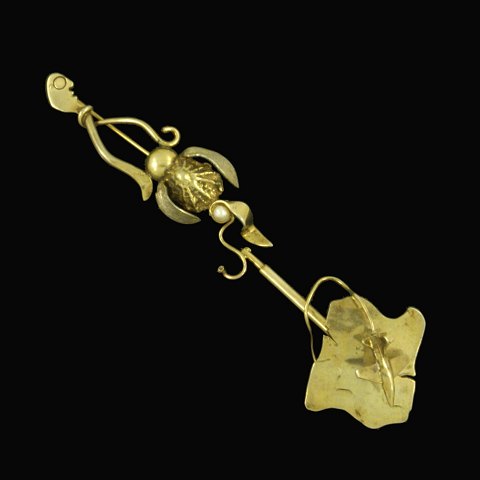 Blicher Fuglesang. Broche i forgyldt Sterling Sølv med Perle.