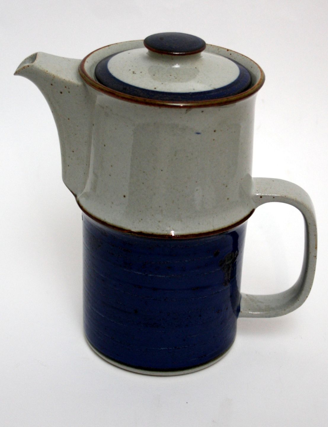 Kaffekande. Højde 21 cm. Længde 19 cm. II. sortering pga glasurfejl, hvor der på den blå bund er en mørkere farve. Fin stand. Pris: 200 kr.