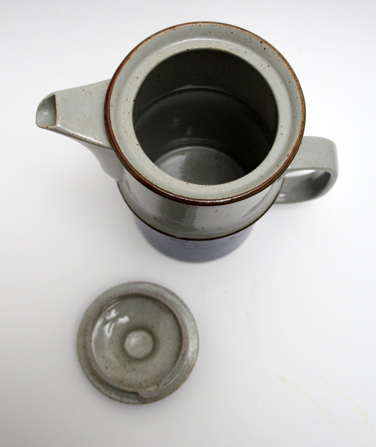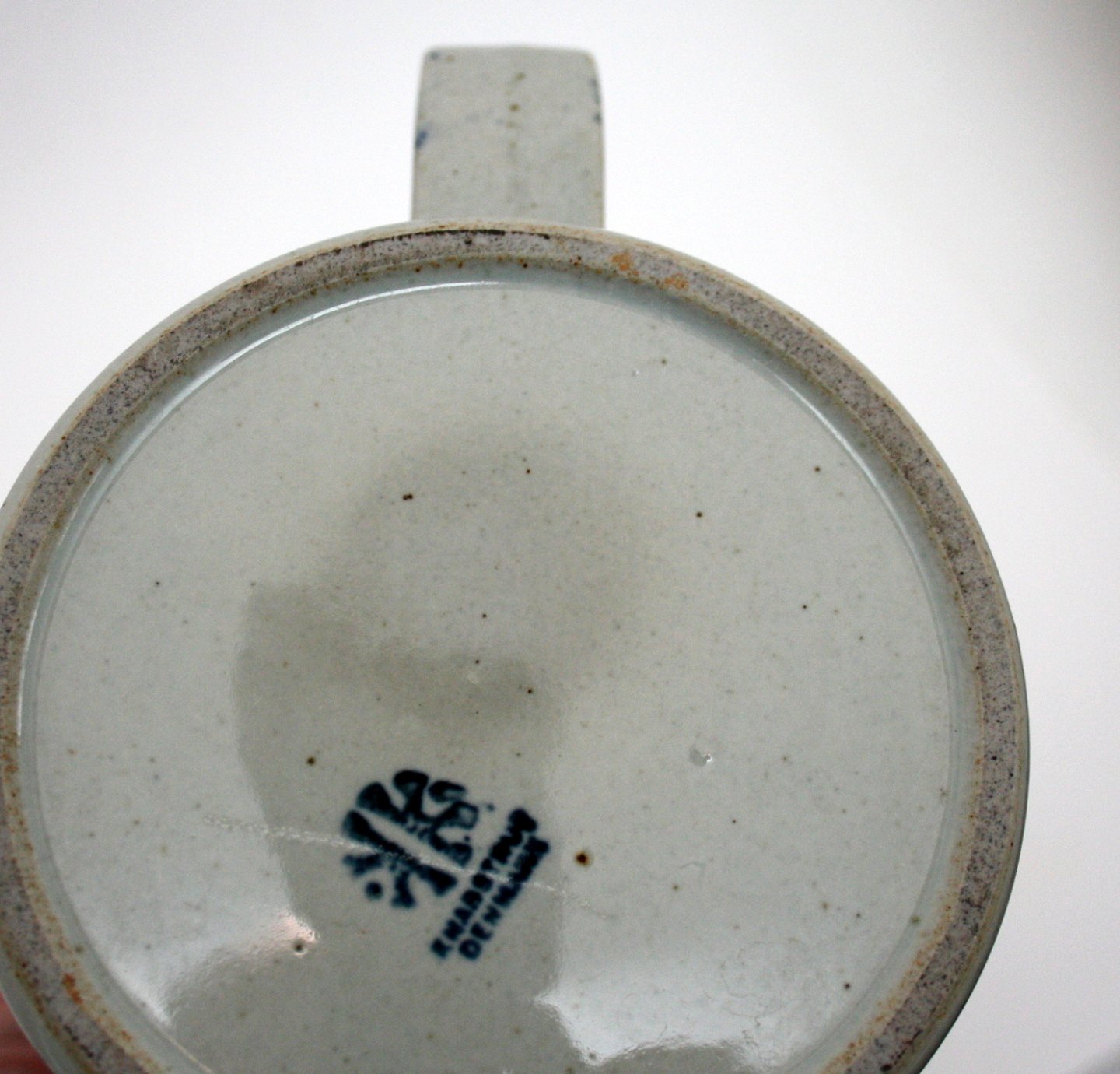 Knabstrup, Christine stentøjsstel grå glasur med blå kant. Designet af den tyske kunstner Christine Konschak, som var tilknyttet Knabstrup i perioden 1967-1970.
