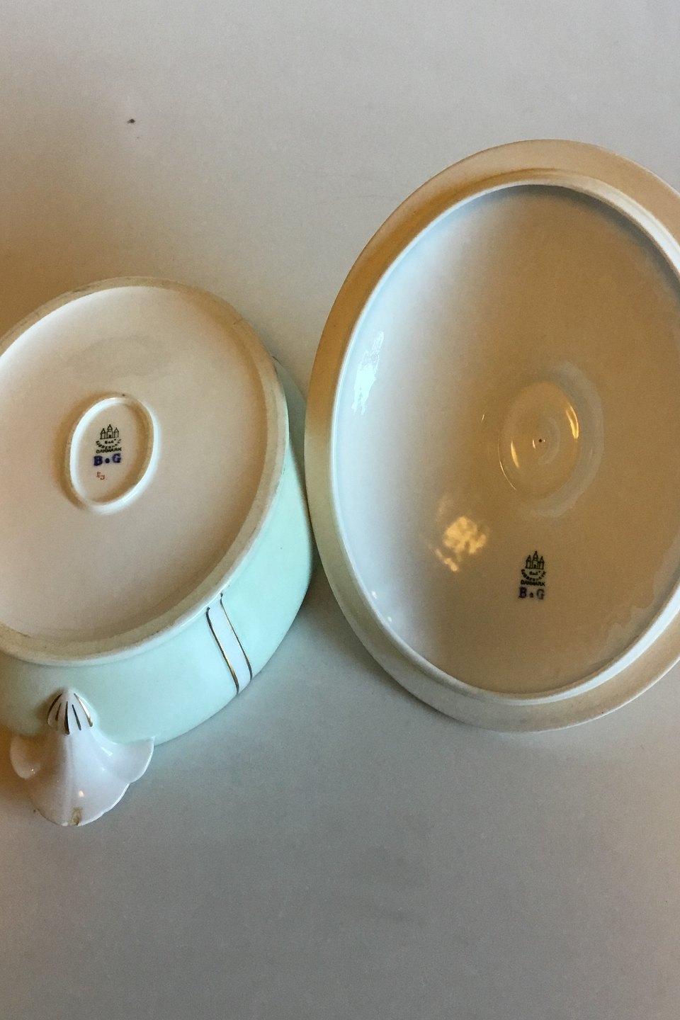 Bing & Grøndahl Stel med grøn dekoration med guld på form 507(Herregaard) Oval Terrin med låg