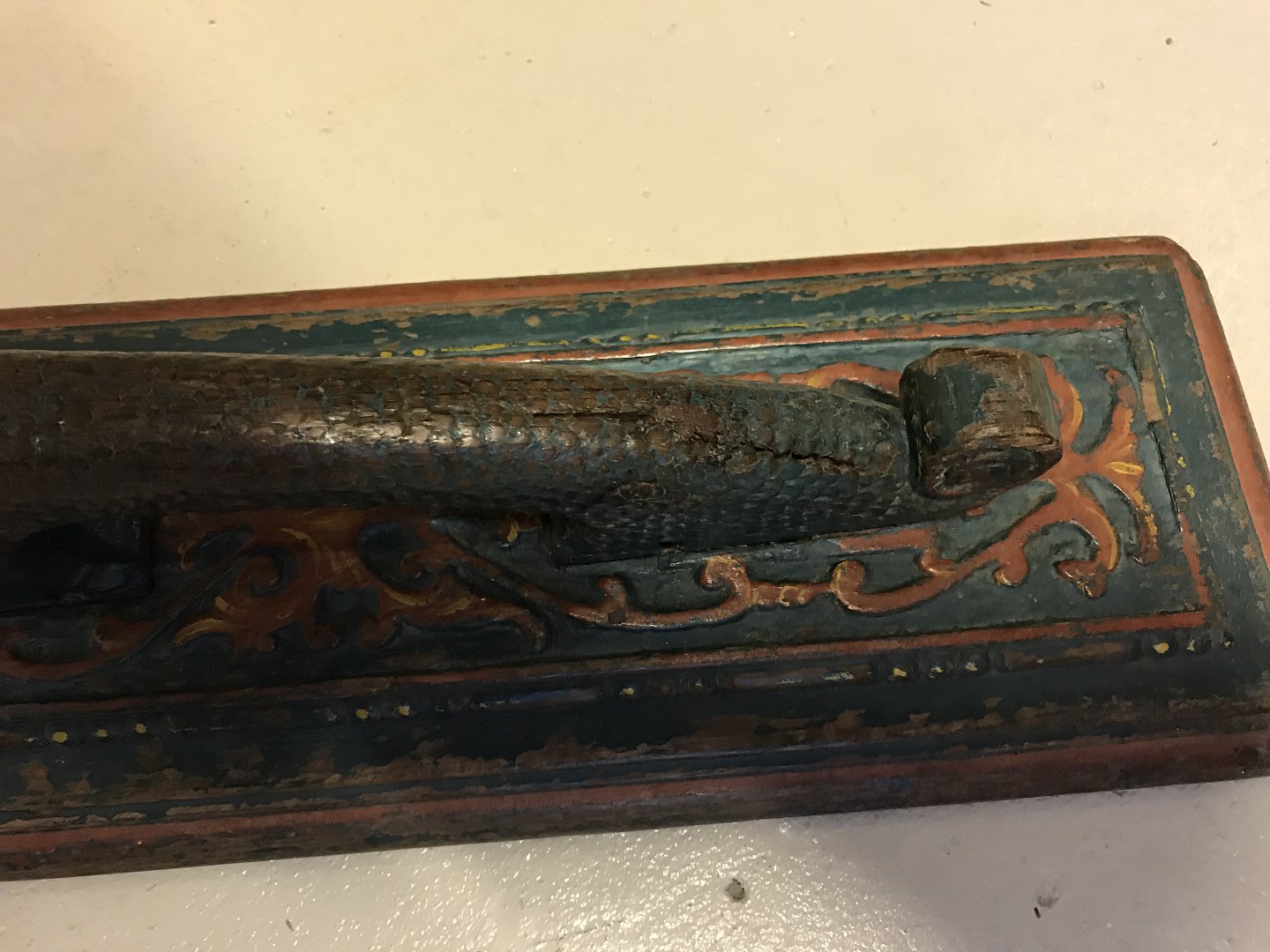 Dansk Manglebrædt , med Havfruegreb, Original dekoreret.