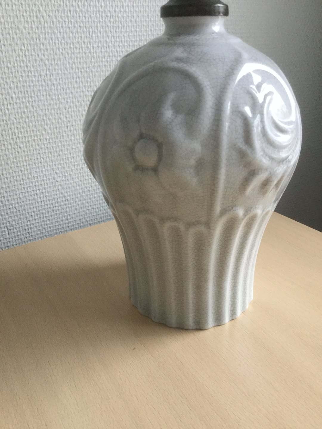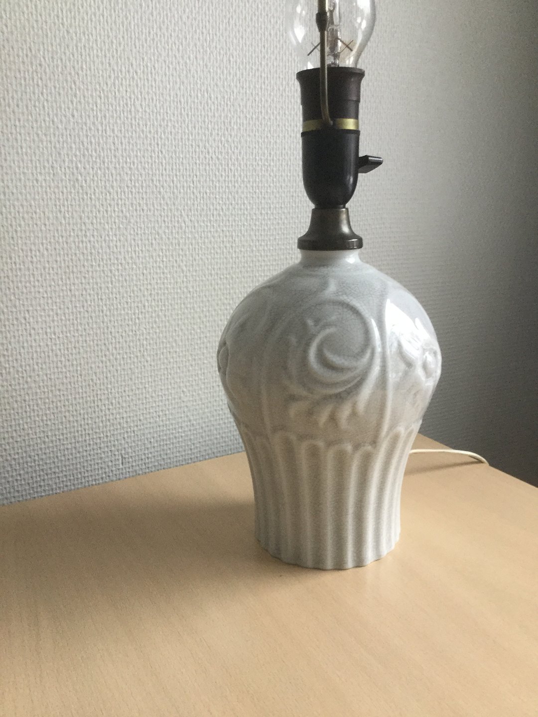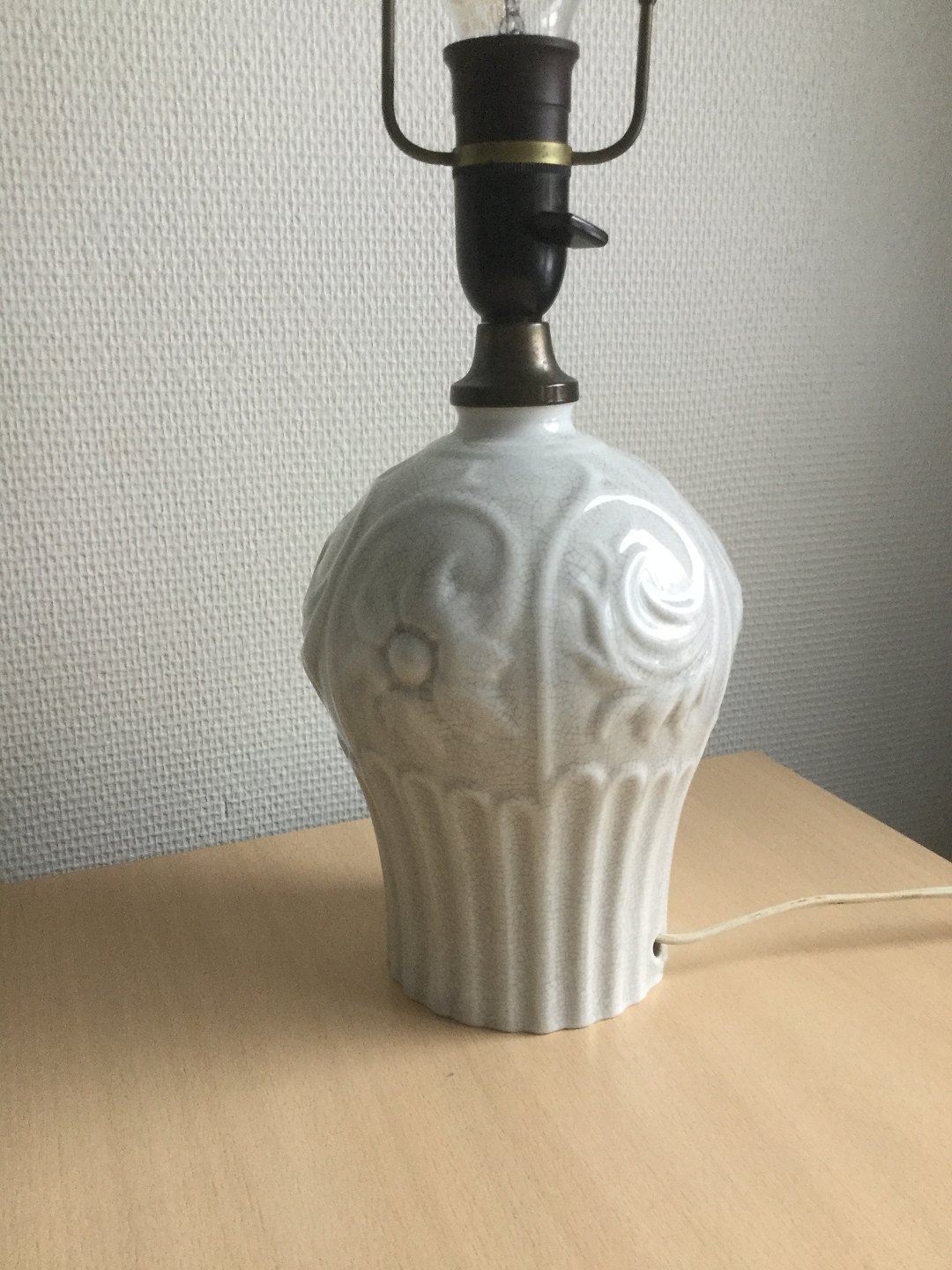 Porcelæns bordlampe med cracelé glasur.