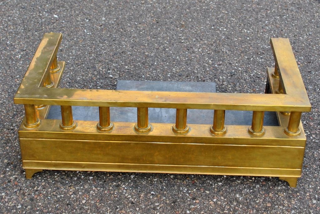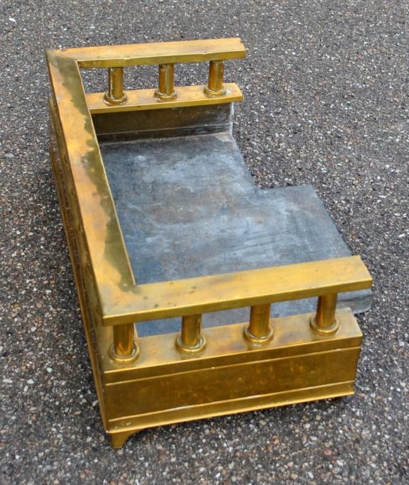 Kamin forsats i messing, o. 1900, Danmark. Med ben og søjler. Bundplade i zink. 52 x 31 cm. Højde: 20 cm.