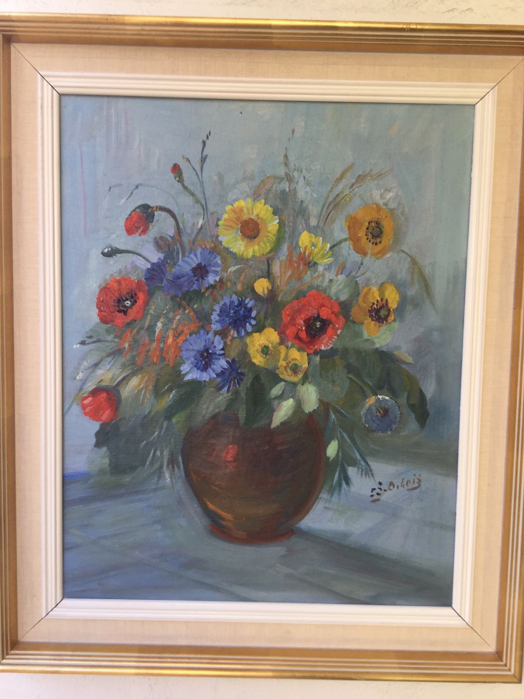 Maleri af Ingeborg Debois - Vase med valmuer, kornblomster m.fl.