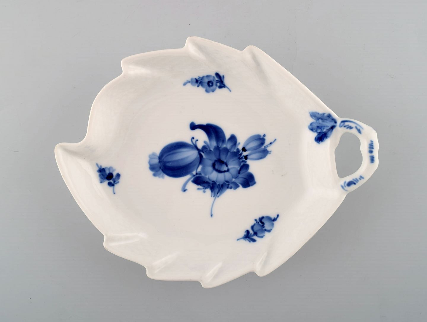 Blå blomst flettet bladformet fad fra Royal Copenhagen.