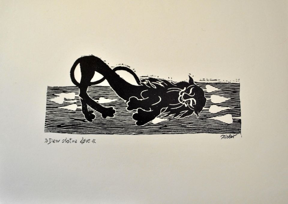 Zieler, Mogens (1905 - 1983) Denmark: The sloth lion. Lineoleumssnit. Signed in print. 21 x 29.5 cm.