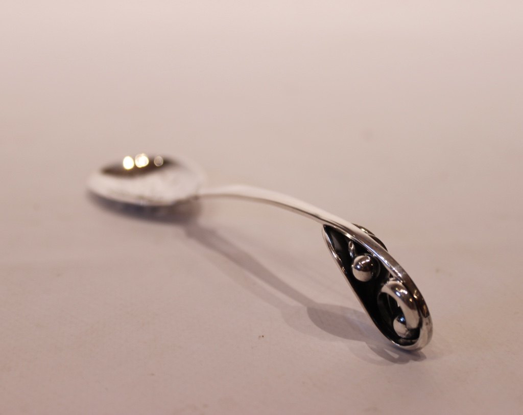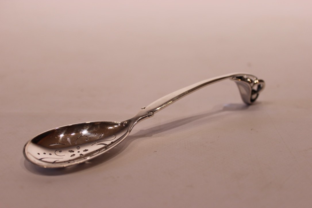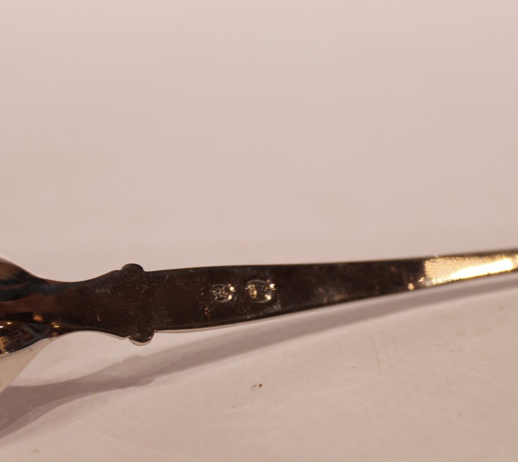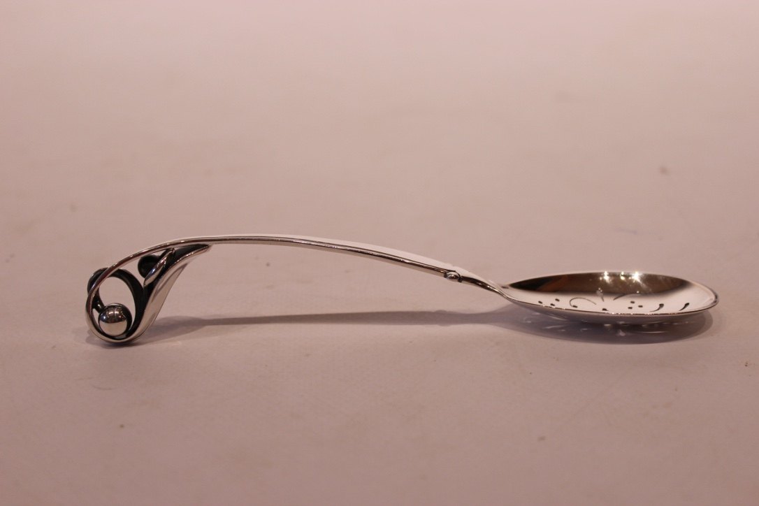 Strøske med smukt dekoreret skaft af tretårnet sølv.