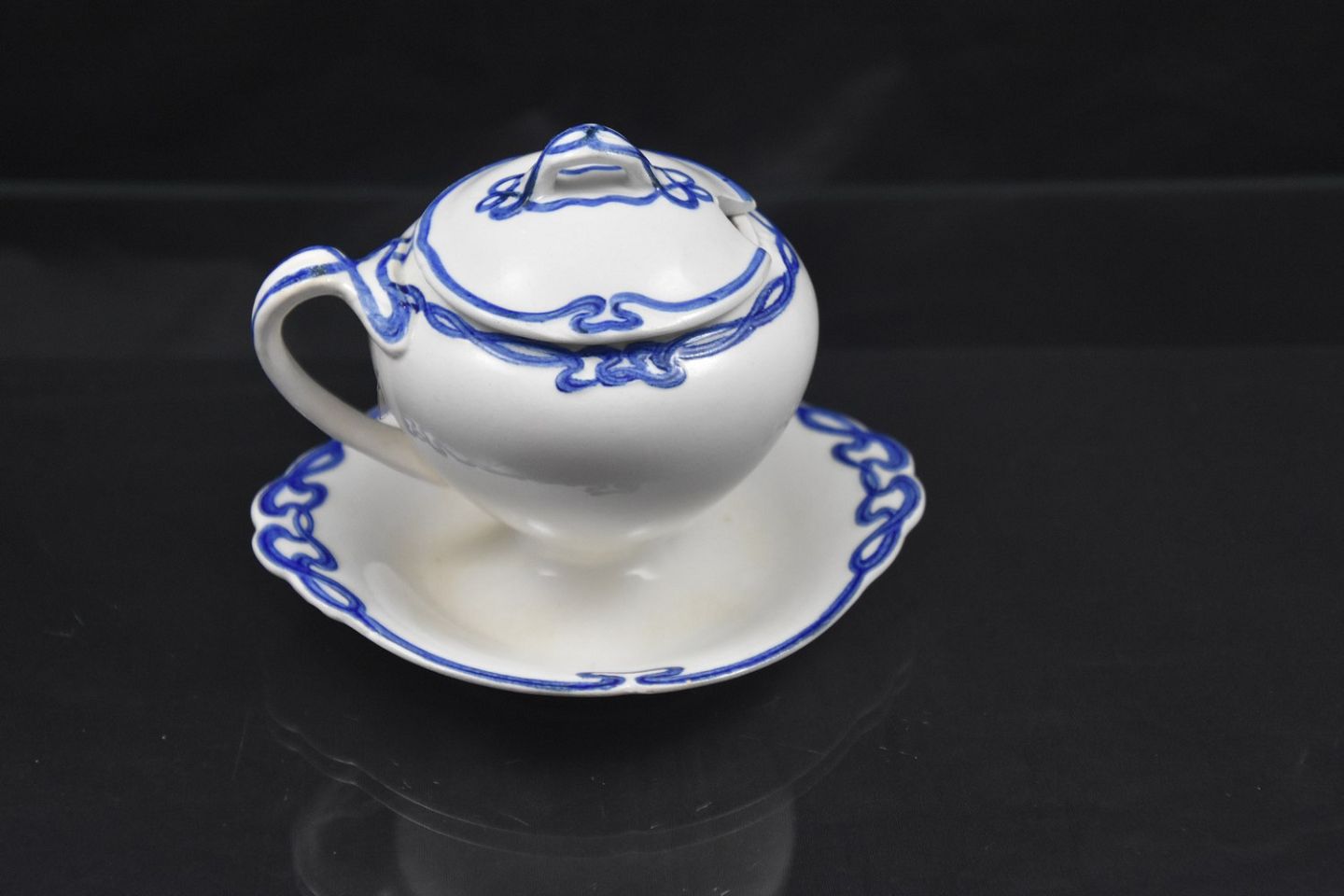 Blå Olga, Sennepskrukke, med hank og fast tallerken