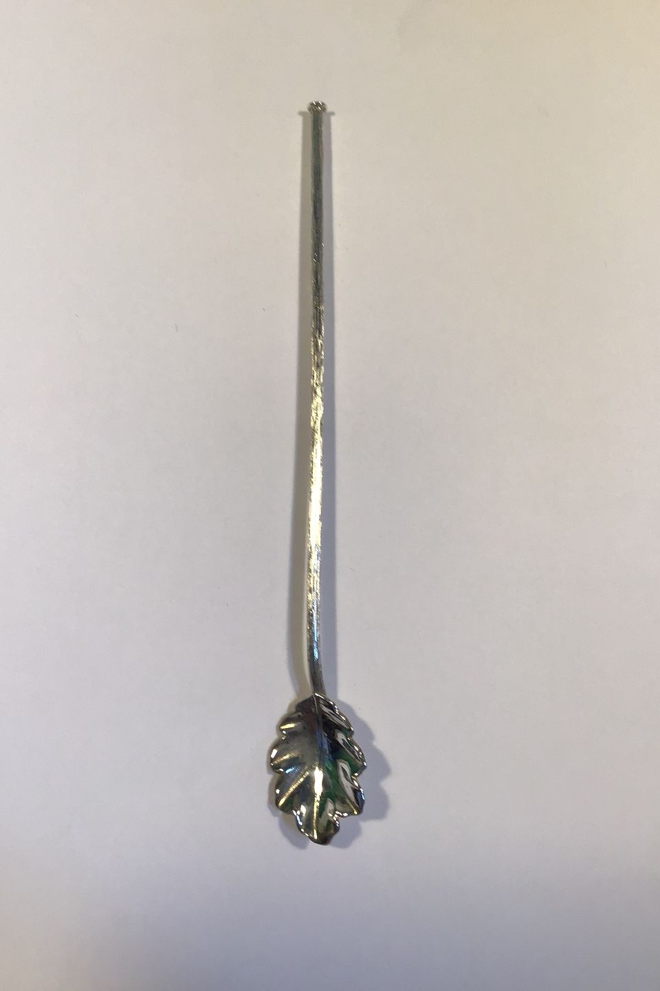 Rørepind/Sugerør Sølv Udsmykket med egebladslaf L 19 cm