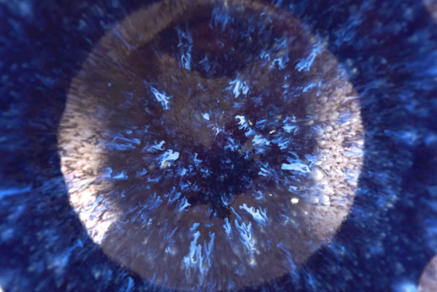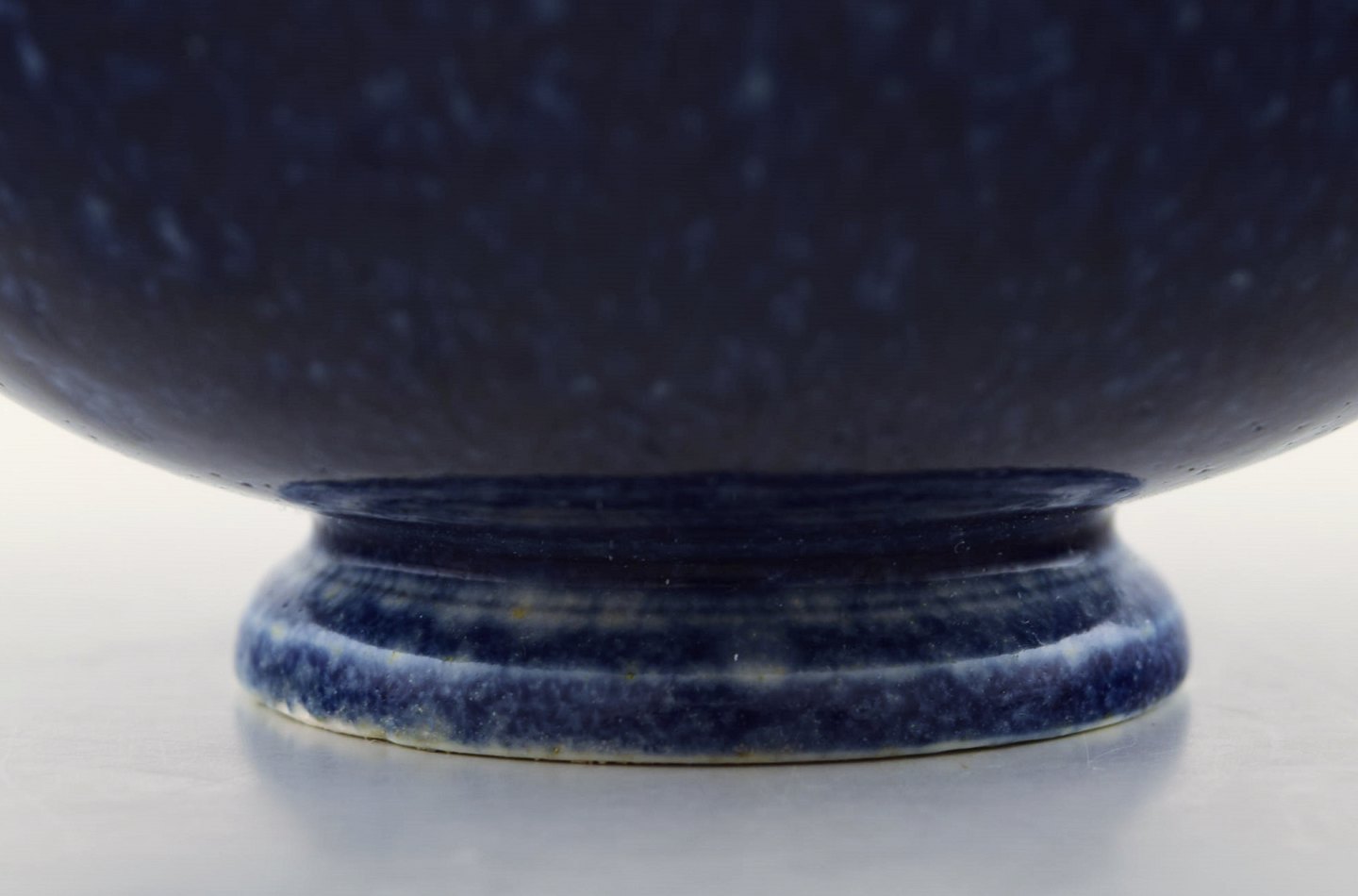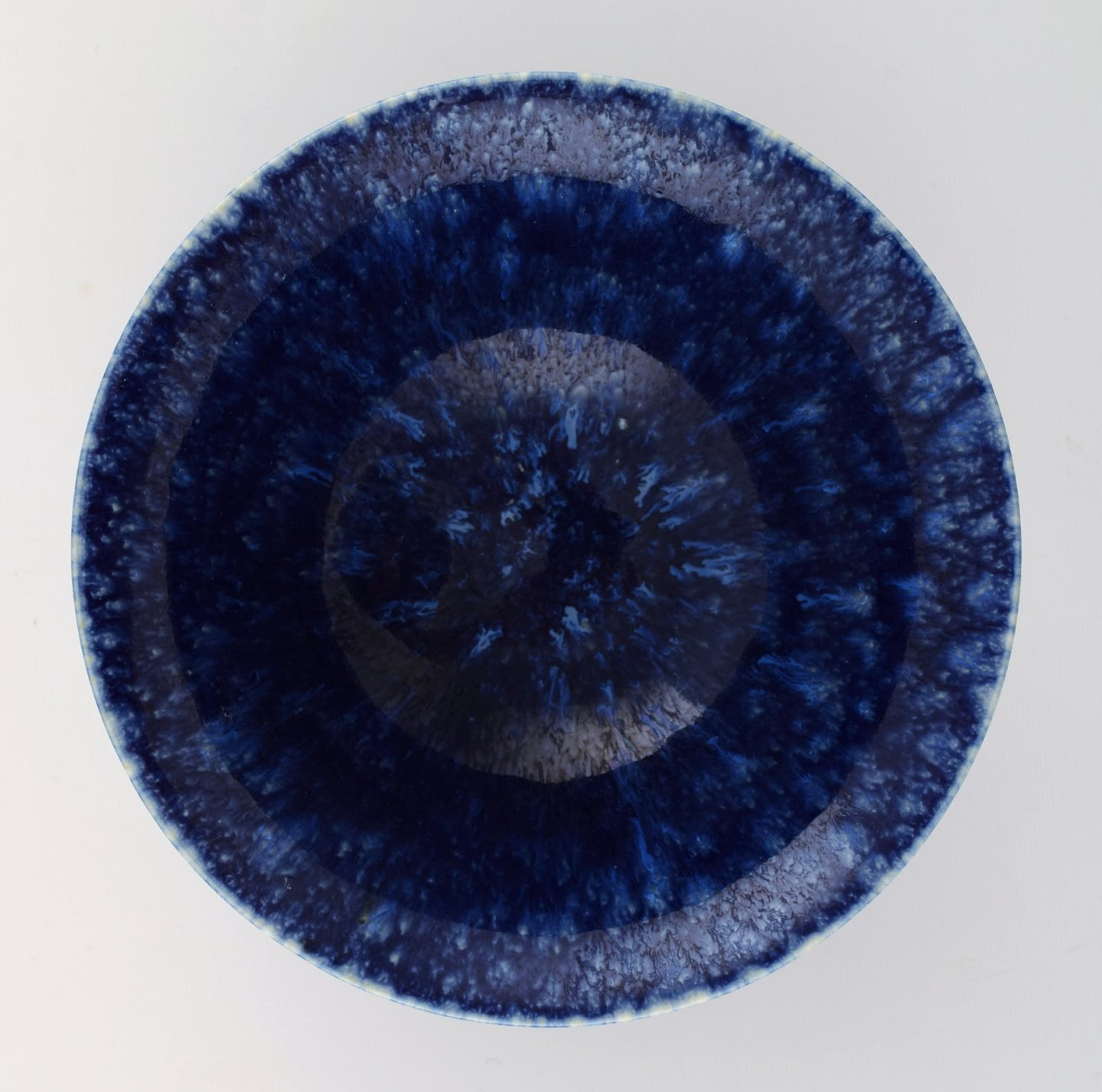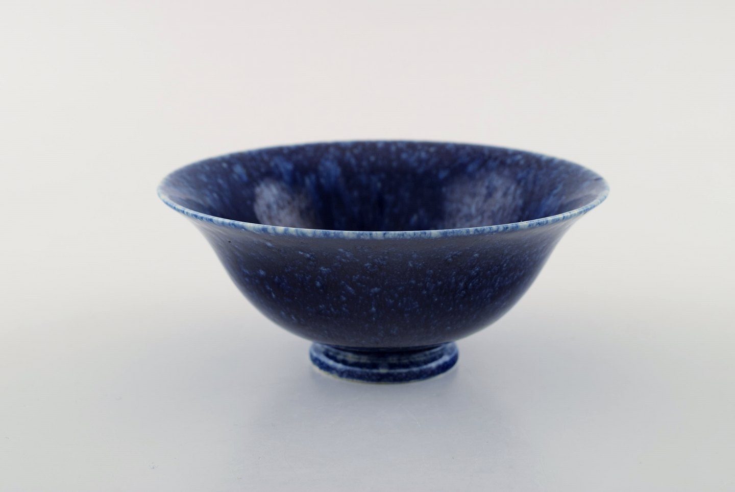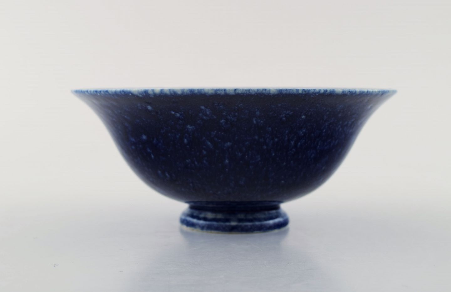Sven Wejsfelt for Gustavsberg Studio Hand. Unika skål på fod i glaseret keramik. 1999. Smuk glasur i blå nuancer.