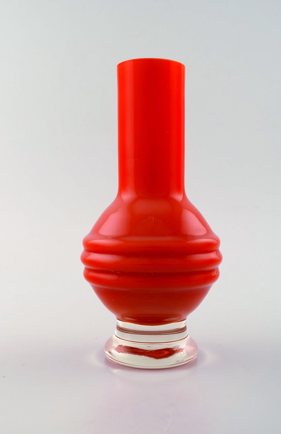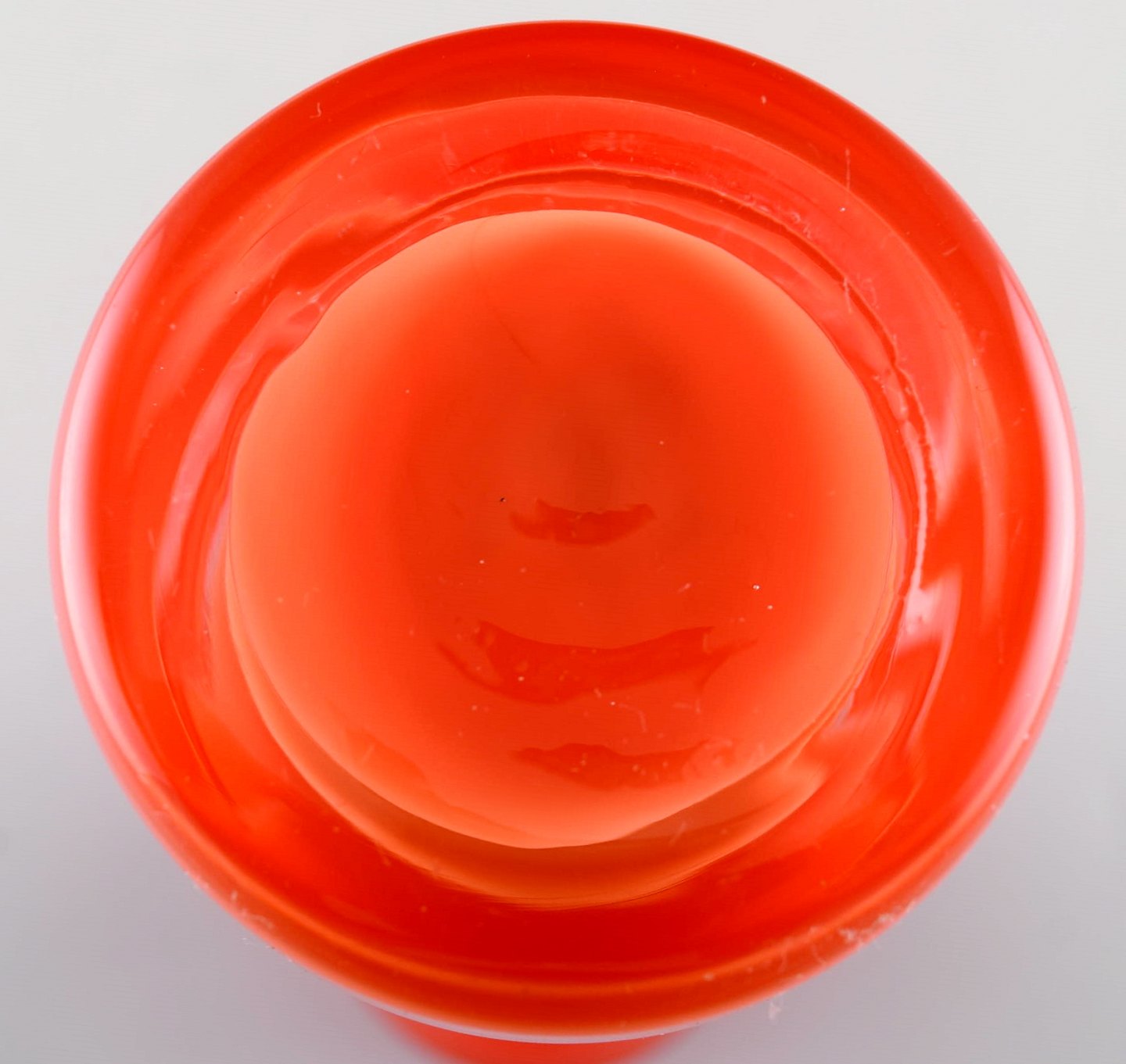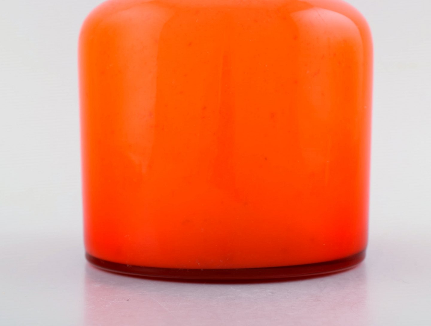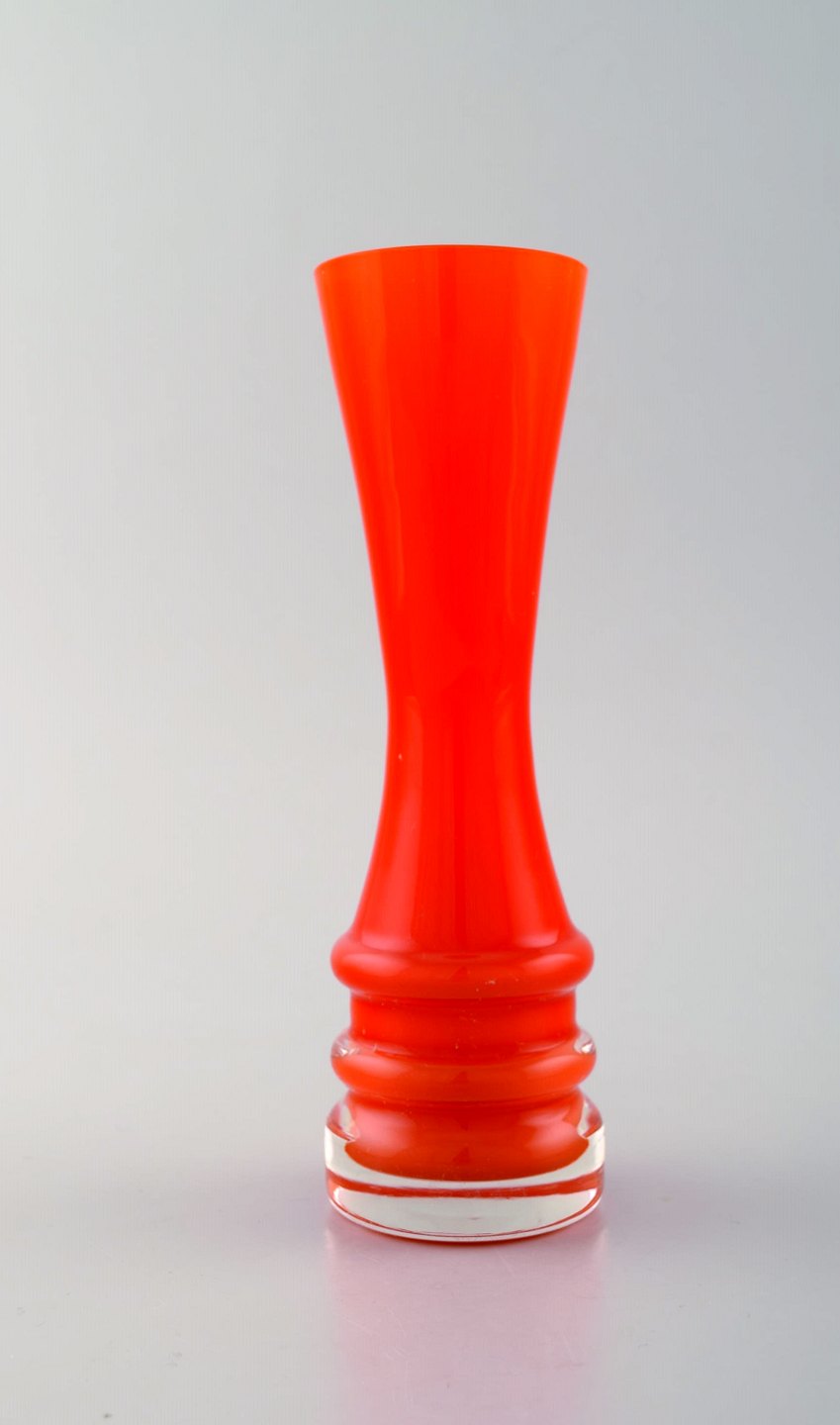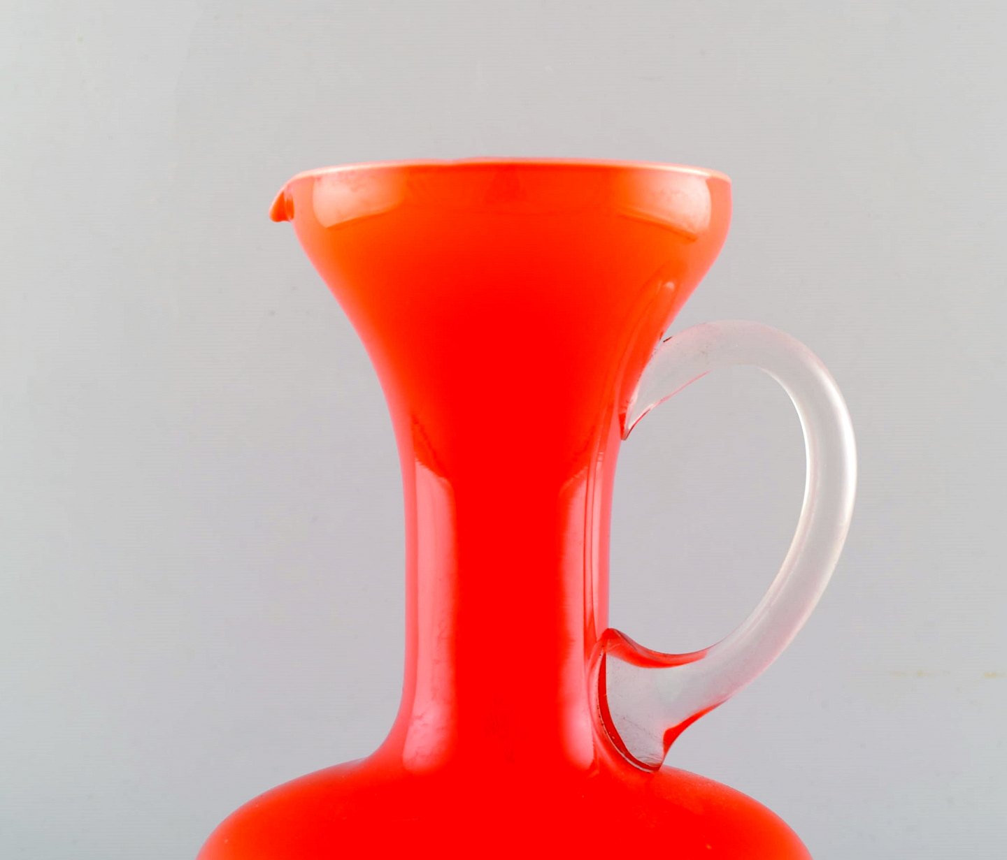 Kande og to vaser i orange kunstglas. 1960/70'erne.