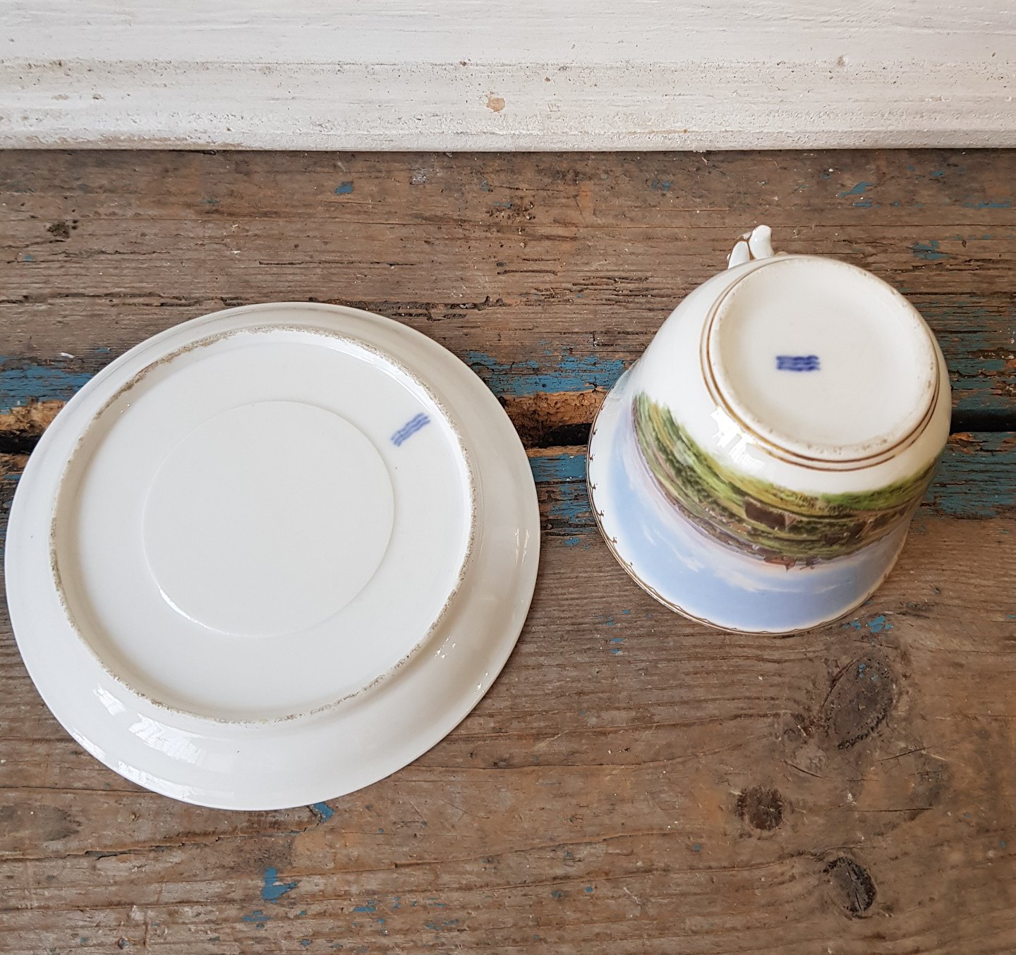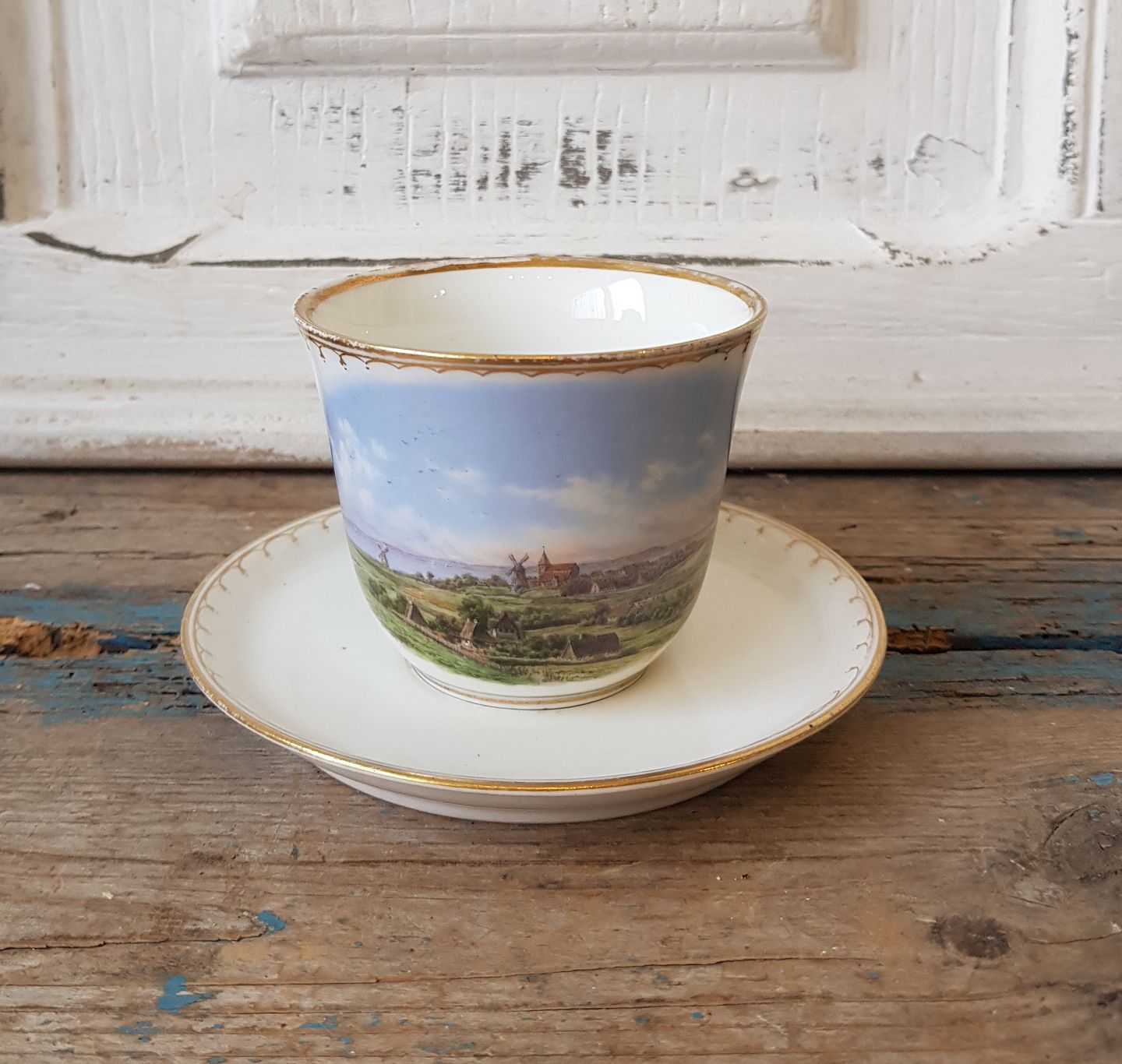 Antik Royal Copenhagen kop dekoreret med landskab fra 1850-98