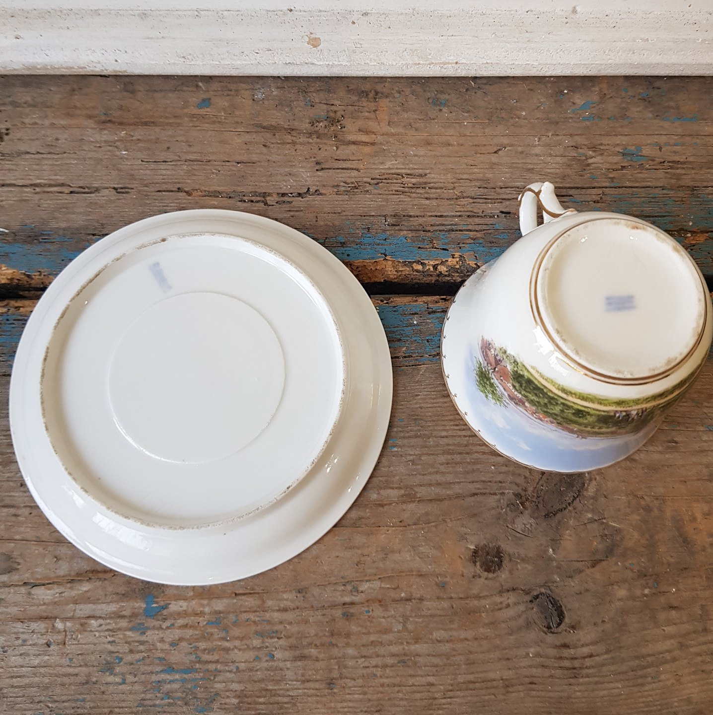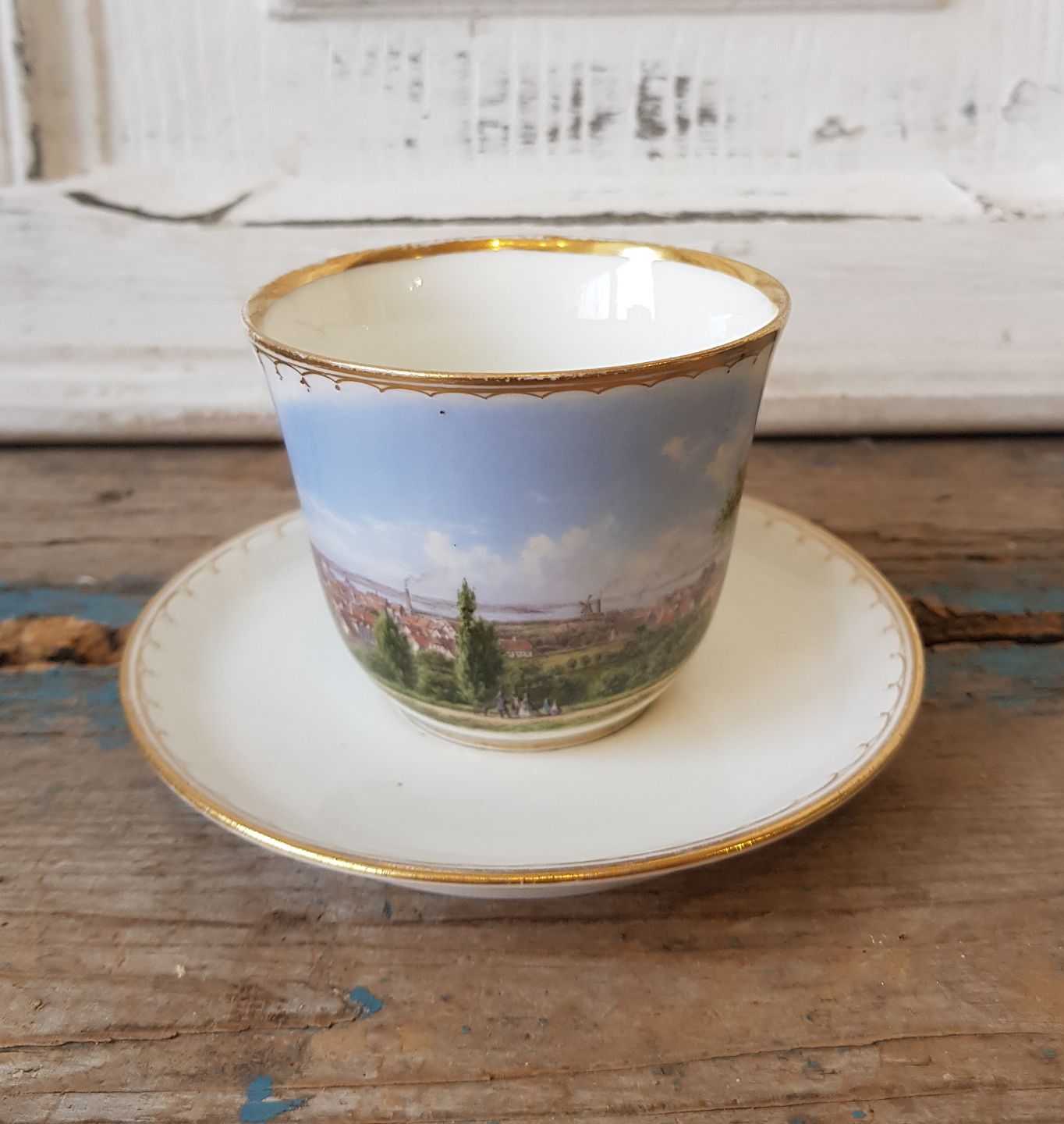 Antik Royal Copenhagen kop dekoreret med landskab fra 1850-98
