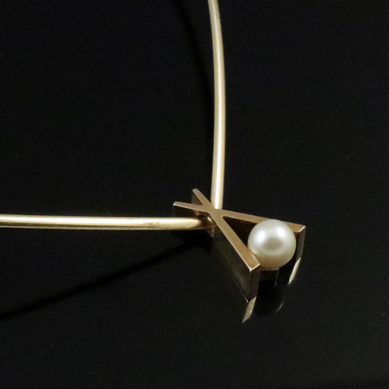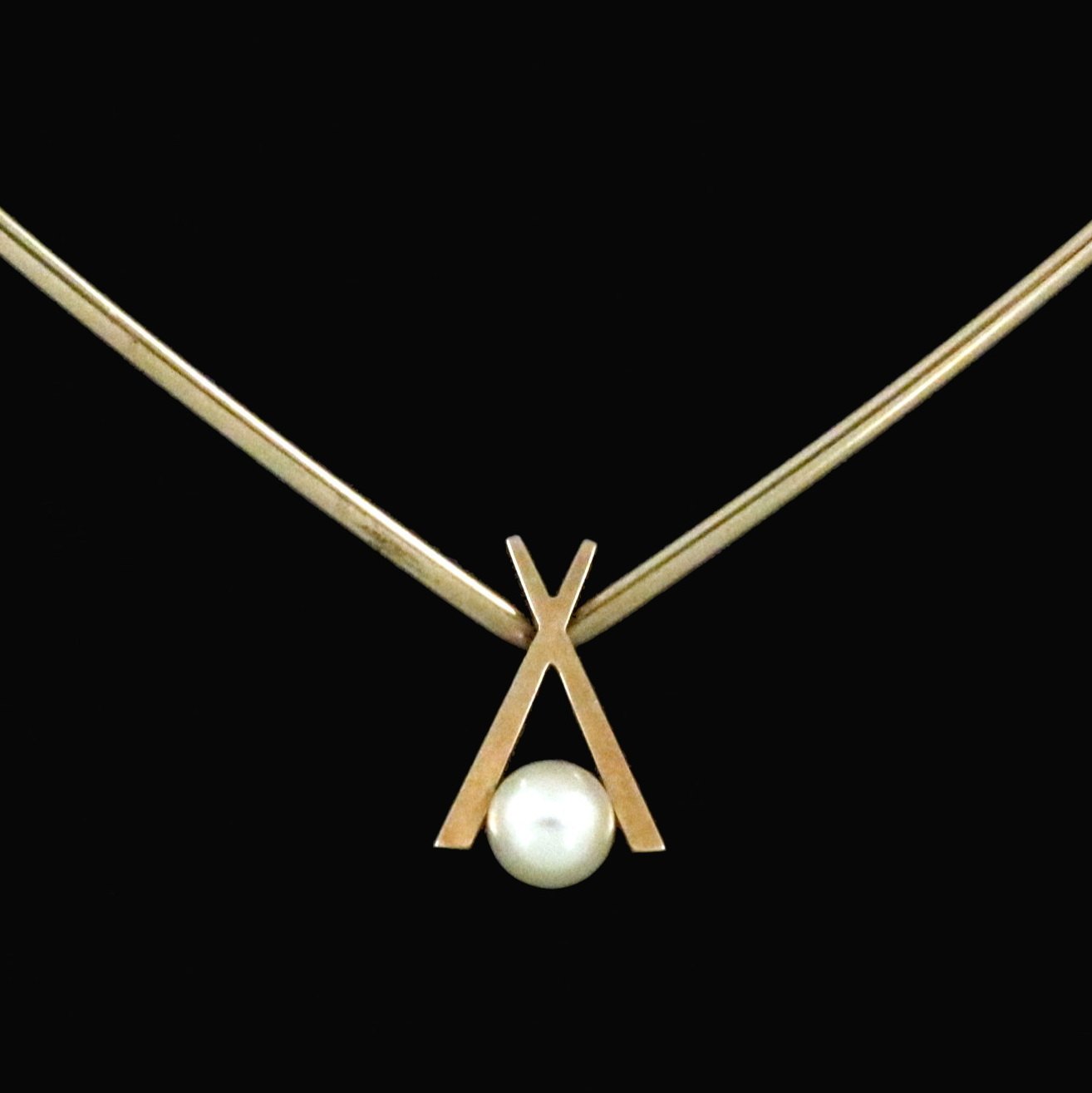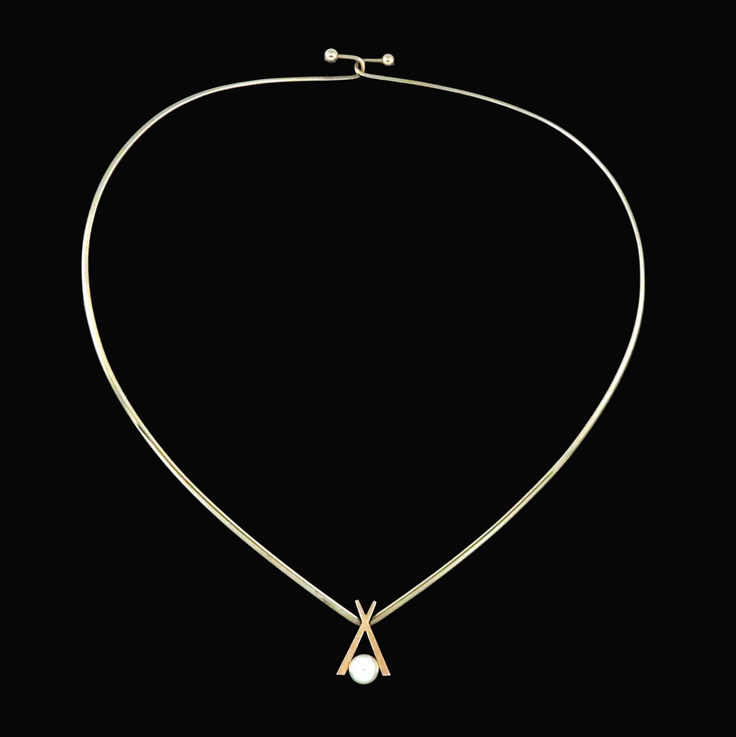 Knud V. Andersen. 14k Gold Neckring with Pearl Pendant. 1960s