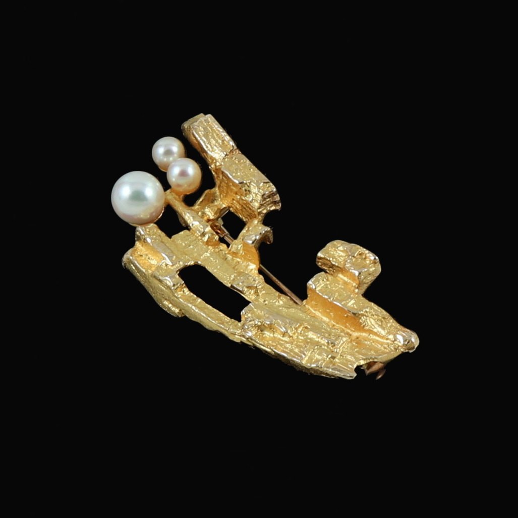 Lapponia. Broche i 14k guld med perler - Björn Weckström 1983