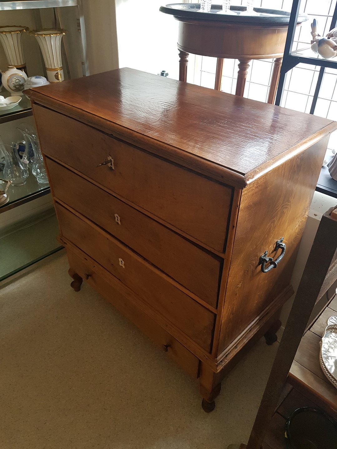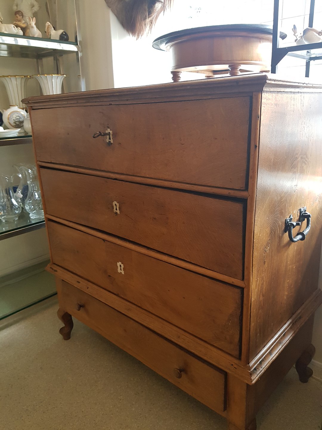 Lille dragkiste i eg fra 1700tallets slutning.
