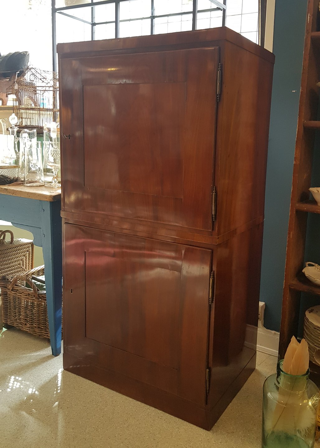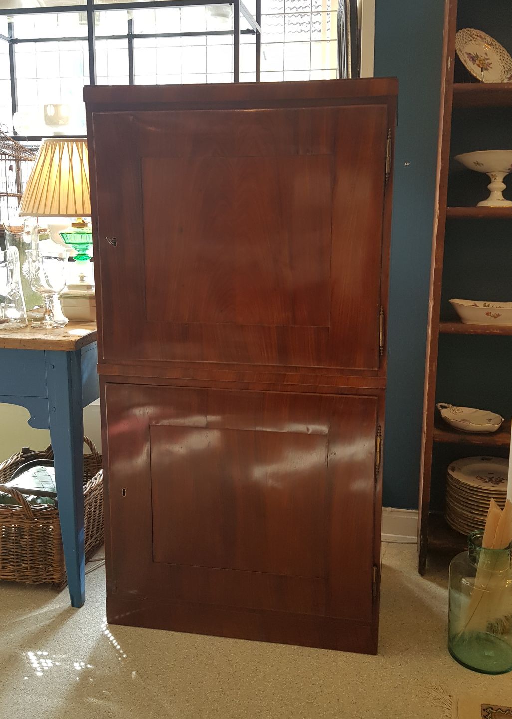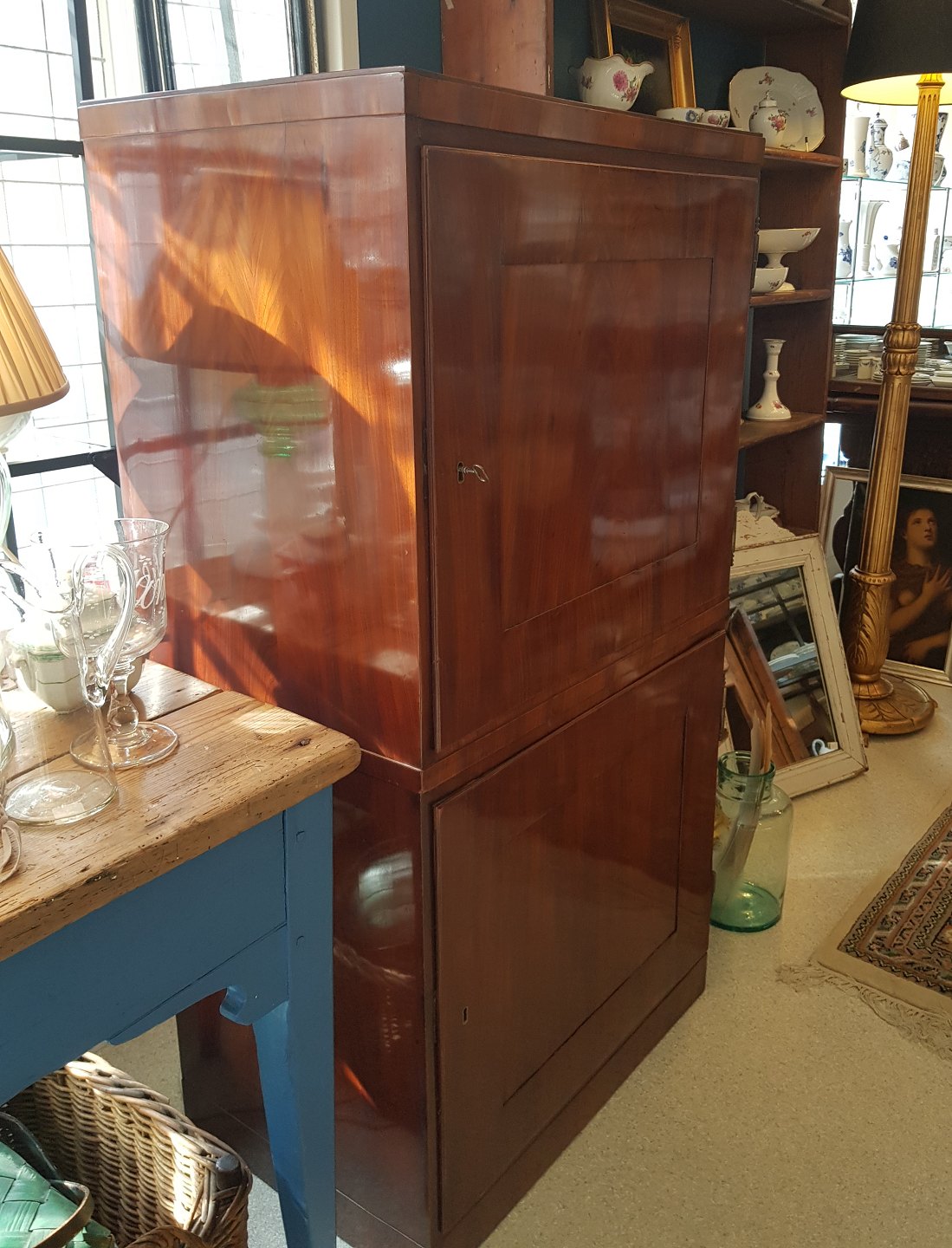 Skabet er i to dele, fremstår med minimale finer skader.