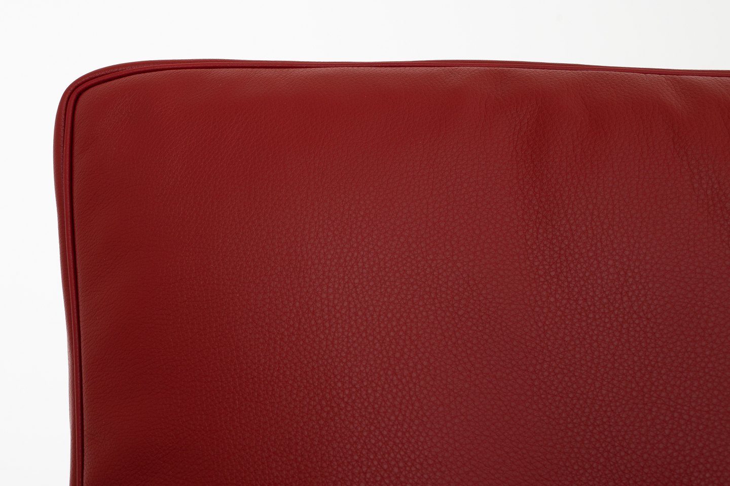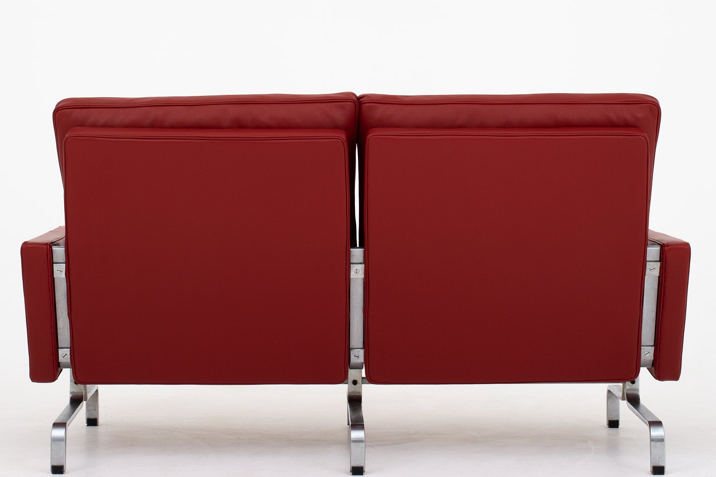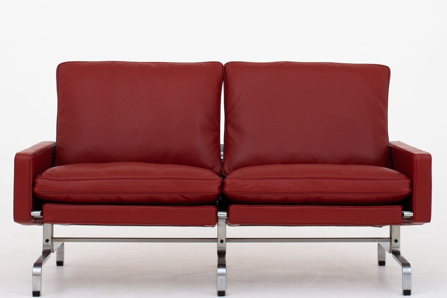 PK 31/2 - Nybetrukket 2 pers. sofa i rødt Paris-læder på stel af stål. KLASSIK tilbyder polstring af sofaen med stof eller læder efter eget ønske. Kontakt os venligst for mere information.