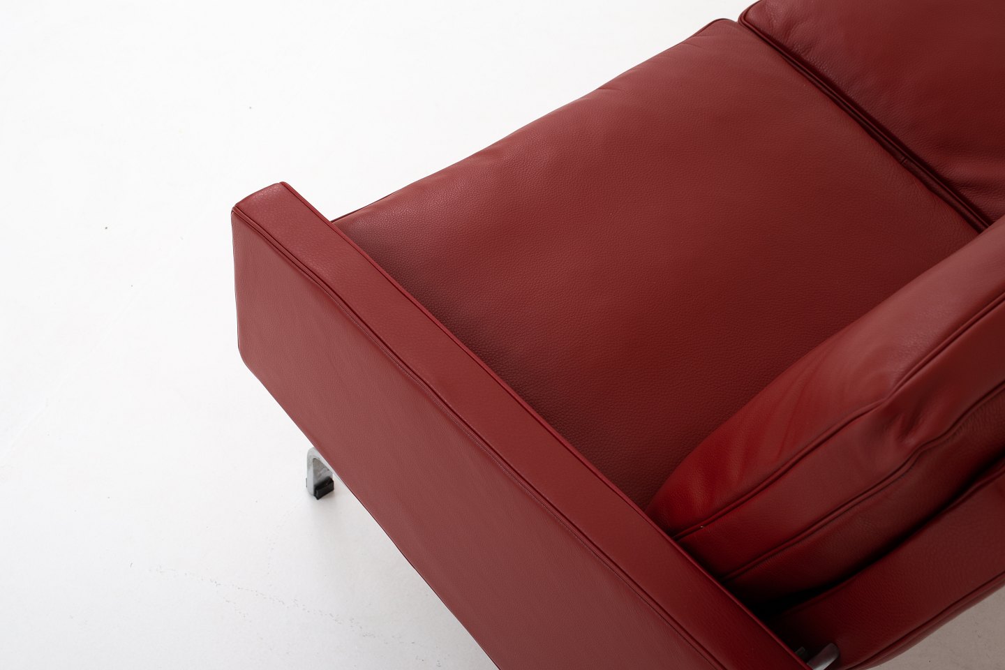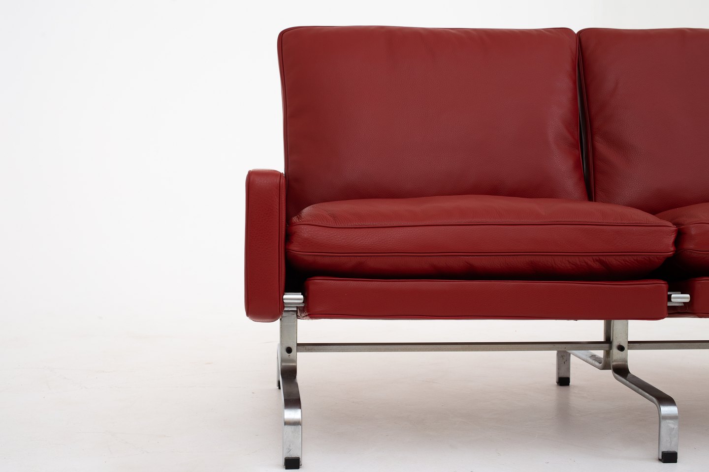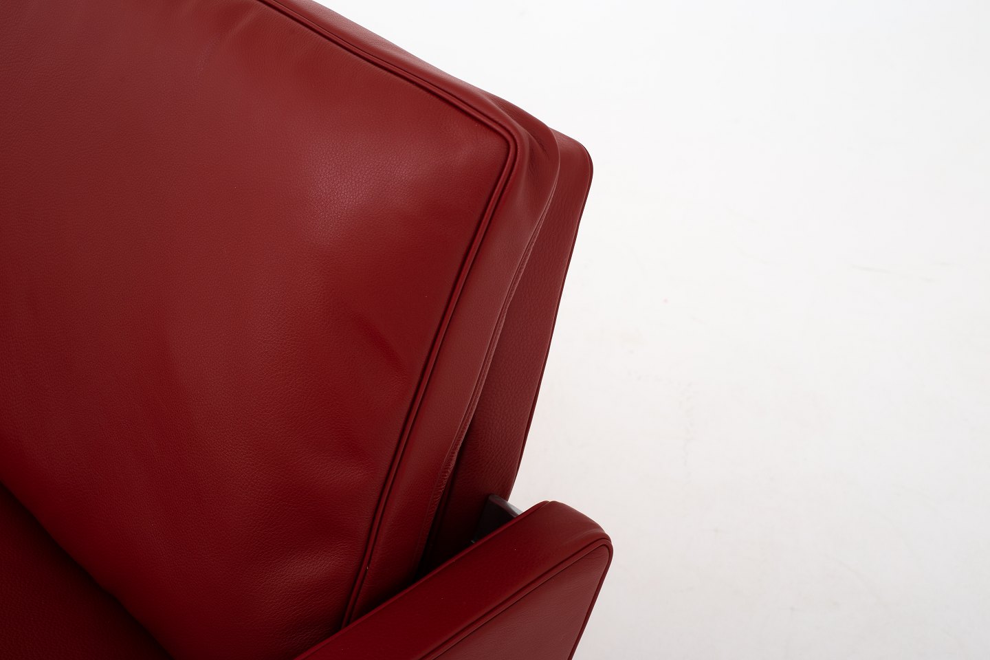 PK 31/2 - Nybetrukket 2 pers. sofa i rødt Paris-læder på stel af stål. KLASSIK tilbyder polstring af sofaen med stof eller læder efter eget ønske. Kontakt os venligst for mere information.