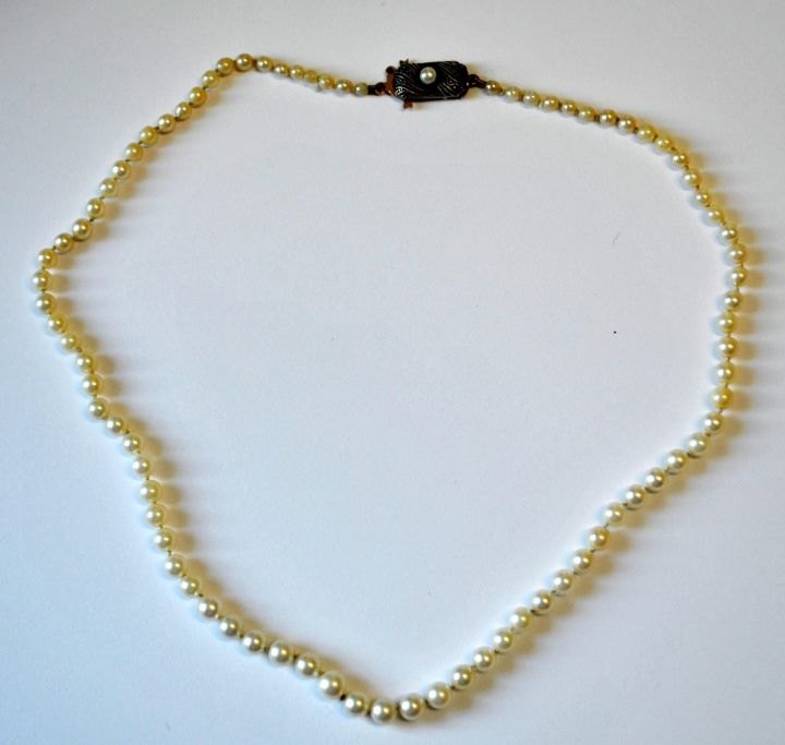 Perle collier, 20. årh. Ægte perler. Længde.: 42 cm. Lås i guld/sølv.